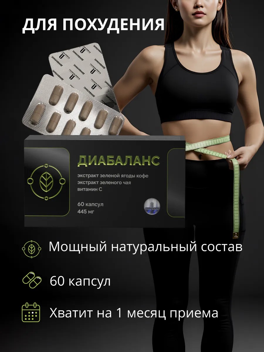 | Полное наименование товара | Жиросжигающие капсулы для похудения Диабаланс с экстрактом ягоды зеленого кофе экстрактом зеленого чая и витамином C |