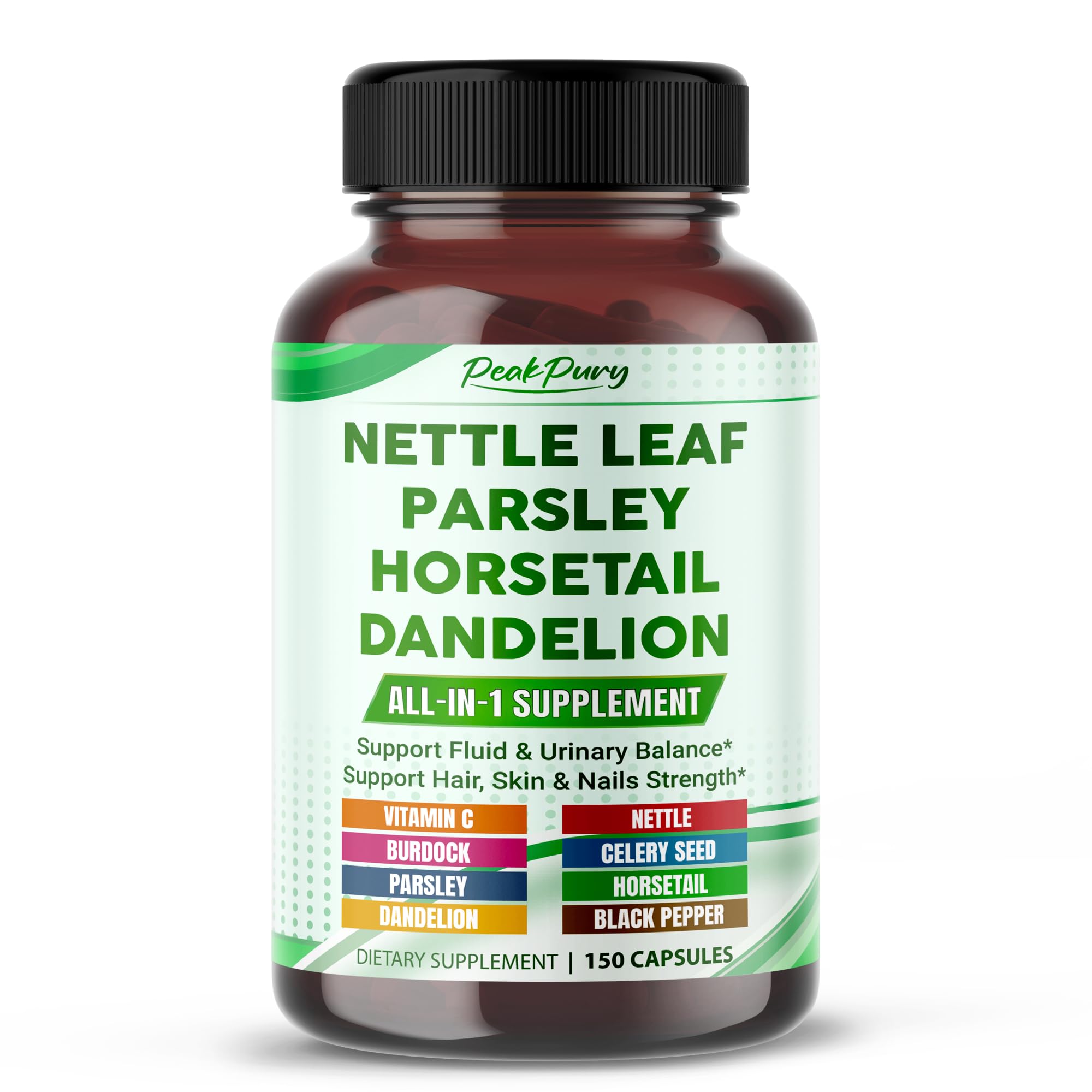 Premium All-in-1 Nettle Leaf Parsley Horsetail & Dandelion Supports Urinary Balance & Hair Skin Nail Strength 150 Capsules 150 count (pack of 1)