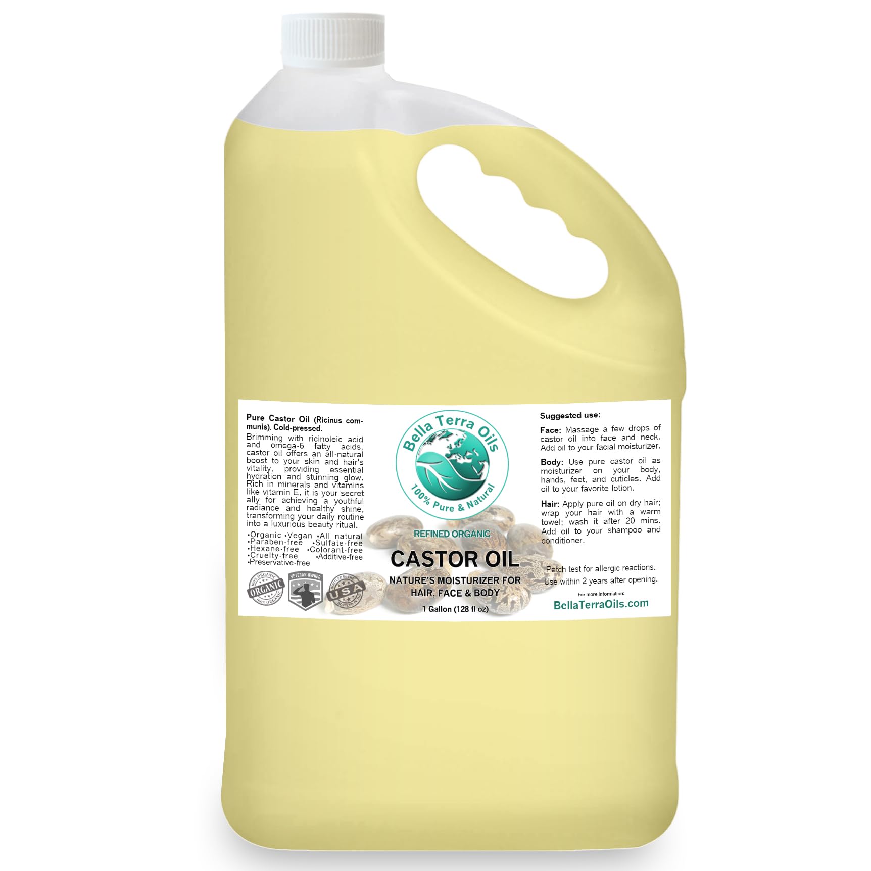 Premium Castor Oil for Luxurious Hair and Radiant Skin 1 Gallon Fast Absorbing All-Natural . Bella Terra Oils