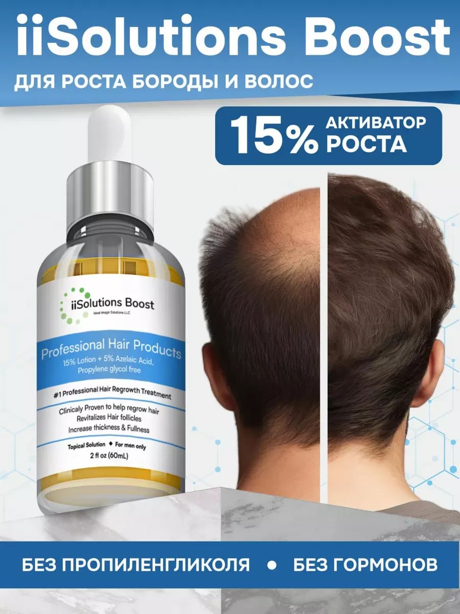 Tired of constant hair loss? Have you noticed the first signs of baldness or dream of growing a long, thick beard? PHP Premium Medical Grade 15% Lotion from iSolutions, propylene glycol-free, is an effective hair growth stimulant and root strengthening treatment. It's an excellent hair care product for both men and women, ensuring beautiful, thick hair. It helps slow hair loss, stimulate new growth, and has a strengthening and healing effect. Suitable for women and men with oily, dry, and sensitive scalps, provided there are no allergies to any of the product's ingredients. This hair growth enhancer is easy to use at home. This product is not a medication. The serum is safe to use not only on the scalp but also on the face, so you can safely use it against eyebrow loss and stimulate the rapid growth of a mustache and stubble. The lotion's active ingredient penetrates the follicle and gently cares for the hair follicle, saturating it with nutrients. This product is suitable for men and women with sensitive skin due to its propylene glycol-free formula. Its small dosage and localized application ensure economical use—a 60 ml bottle will last a long time! Just two applications per day (morning and evening) will help you achieve voluminous, healthy, and beautiful locks. Its composition significantly improves upon similar products, such as Kirkland 5% minoxidil, minopsin, mino, and xidil. Capixil and iisolution are also used with this product. Please note that it is recommended to use the product in a course to achieve optimal results. The kit includes everything necessary for an effective treatment—a bottle with a measuring pipette and detailed instructions for use. Consult a doctor before use. This is not a medicine.