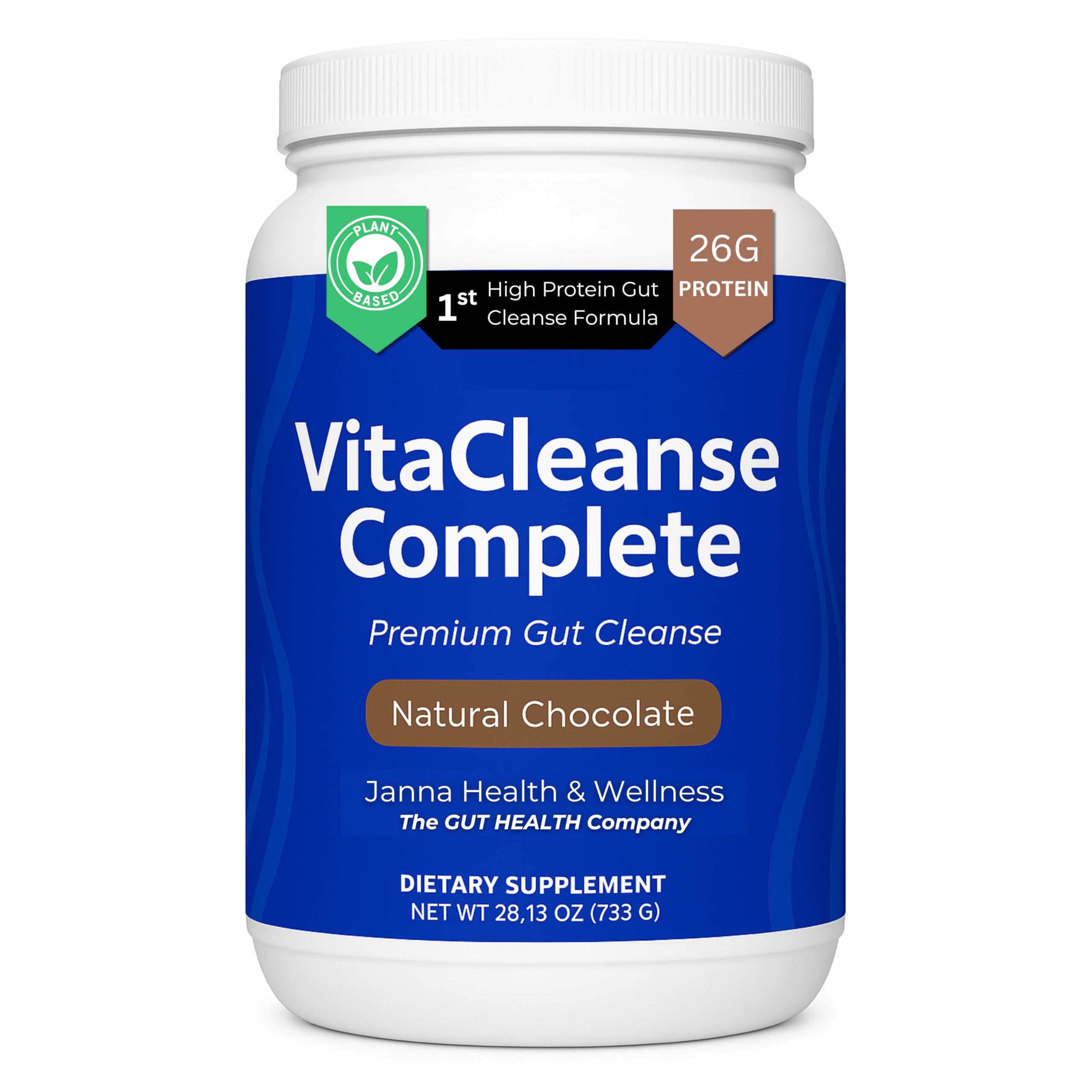 Clean, Conscious Formula – Always sugar-free, gluten-free, and plant-based, with monk fruit for natural sweetness and no artificial additives. Energy Wellness Boost – Beyond digestive comfort, our customers reported higher energy levels and an overall sense of feeling "reset" after consistent use. Blends Smoothly, Tastes Pleasant – Described as a subtle, earthy chocolate with less chalkiness than other shakes, it mixes well in water or almond milk for a nourishing detox drink. All-in-One Detox Multivitamin – With a complete spectrum of nutrients and 26g of protein, many reviewers skip their multivitamin when taking this, calling it a true all-in-one detox supplement. Full-Body Detox Formula – More than a protein shake, VitaCleanse Complete combines botanicals like turmeric and pomegranate with essential vitamins, minerals, and antioxidants to support a comprehensive cleanse for the whole body. Supports GI Health Digestive Reset – Our customers report feeling less bloated and experiencing noticeable gut relief within just a few days, making it a solid option for those seeking a short-term gut reset.