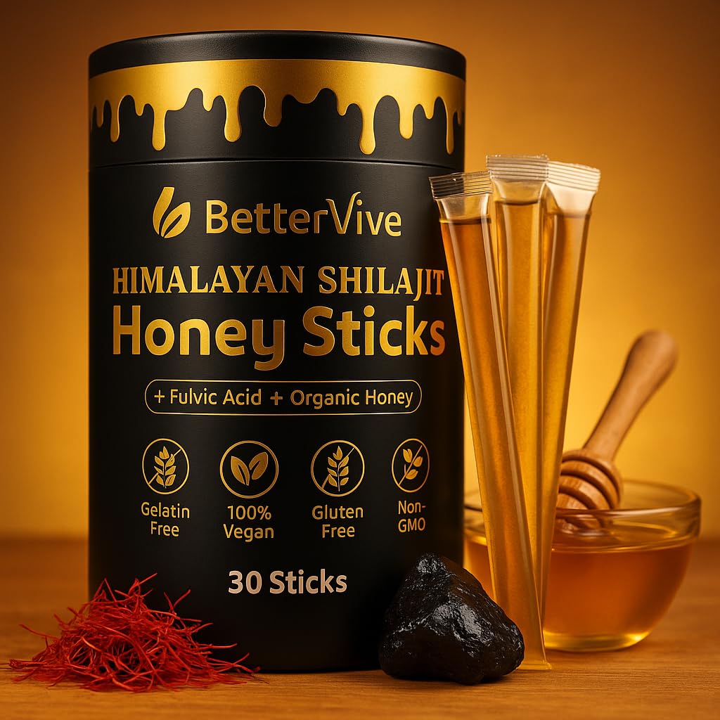 Clean, Transparent Safe — non-GMO, gluten-free, no artificial flavors or preservatives, manufactured in a GMP-certified facility. (Not intended to diagnose, treat or cure any disease.). Holistic Energy Immune Support — designed to help with stamina, focus and resilience during demanding workdays, workouts or travel fatigue. Raw Organic Honey Fusion — combined with natural honey for antioxidant support, immune resilience and a pleasantly sweet, earthy taste. Pure Himalayan Sourced Shilajit Resin — harvested at high altitude, lab-tested to deliver 70 fulvic acid 85 trace minerals for cellular vitality and energy support. Ultra-Convenient On-the-Go Format — individually sealed honey sticks make it easy to enjoy your daily shilajit anywhere: gym, commute, travel or busy day.