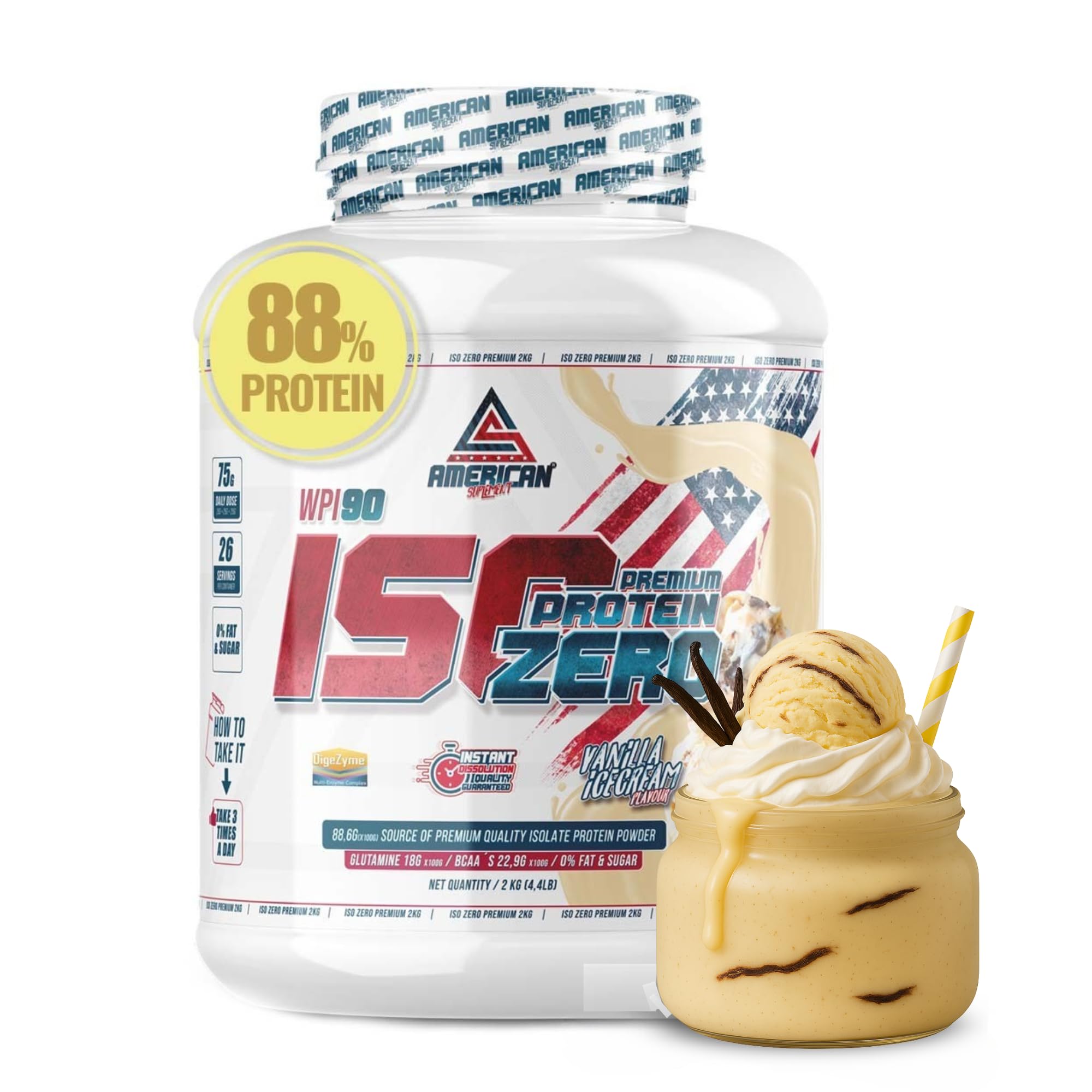 TRUSTED BY OUR COMMUNITY: Join thousands of satisfied customers who have transformed their physiques with our protein shakes. Our commitment to quality and customer satisfaction has positioned us as the most reliable choice for those seeking real results at a great price. Made in Spain. SMOOTH AND EXQUISITE FLAVORS: We understand how important the taste of your iso protein is to you, which is why we've created a range of exquisite flavors with a delicate, realistic, and, most importantly, non-overpowering taste. HASSLE-FREE DIGESTION: This protein shake is easy to digest thanks to the presence of the best digestive enzymes: DigeZyme, which ensures your body absorbs every gram of nutrients without causing any gastric discomfort. Furthermore, the powders are fine, dissolve quickly and efficiently for uncomplicated preparation and consumption. ZERO SUGAR, ZERO FAT 100 FITNESS: This protein powder is the essence of health in a single product, with no sugar or fat. This protein isolate is the perfect choice for healthy nutrition and gaining muscle mass without accumulating body fat. Ideal for those who want to stay healthy! PURE, HIGH-QUALITY PROTEIN: Achieve your muscle-building goals with our high-quality, highly isolated protein powder, boasting up to 89 protein purity, designed for excellent protein absorption. Thanks to its high percentage and protein purity, you can more easily build muscle mass and protect yourself against catabolism.CONFIANCE SOUTENUE PAR NOTRE COMMUNAUTÉ : Rejoignez des milliers de clients satisfaits qui ont transformé leur physique avec nos shakes protéinés. Notre engagement envers la qualité et la satisfaction du client nous a positionnés comme le choix le plus fiable pour ceux qui recherchent des résultats réels à un bon prix. Fabriqué en Espagne. SAVEURS DOUCES ET EXQUISES : Nous comprenons l'importance que le goût de votre protéine iso a pour vous, c'est pourquoi nous avons créé une gamme de saveurs exquises, avec un goût délicat, réaliste et surtout, non écœurant. DIGESTION SANS INCONVÉNIENTS : Ce shake protéiné est facile à digérer grâce à la présence des meilleures enzymes digestives : DigeZyme, qui garantiront que votre corps absorbe chaque gramme de nutriments sans causer de désagréments gastriques. De plus, les poudres sont fines, se dissolvent rapidement et efficacement pour une préparation et une consommation sans complications. ZÉRO SUCRE, ZÉRO GRAISSE 100 FITNESS : Cette protéine en poudre est l'essence même de la santé en un seul produit, sans sucre ni graisse. Cette protéine isolée est le choix parfait pour une nutrition saine et pour gagner de la masse musculaire sans accumuler de graisse dans votre corps, Idéale pour les personnes souhaitant rester en bonne santé !. PROTÉINE PURE ET DE QUALITÉ : Atteignez vos objectifs de gain musculaire avec notre protéine en poudre de haute qualité, hautement isolée, avec jusqu'à 89 de pureté protéique, conçue pour une excellente absorption des protéines. Grâce à son pourcentage élevé et à la pureté de la protéine, vous pourrez développer plus facilement votre masse musculaire et vous protéger contre le catabolisme.Premium Iso Zero Protéine de lactosérum Aide à augmenter votre masse musculaire Faible en glucides 0 Sucres (2 kg, Vanille) Vanille 2 kg