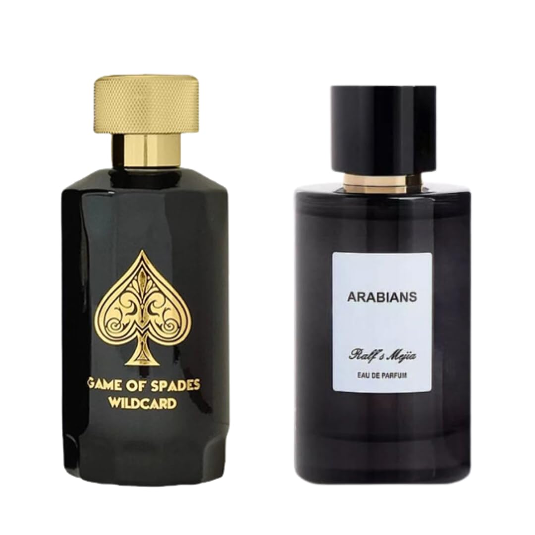 Premium Perfume Set for Men: Jo Milano Game of Spades Wildcard & Ralf's Mejia Arabians Eau de Parfum 3.4 Oz Each