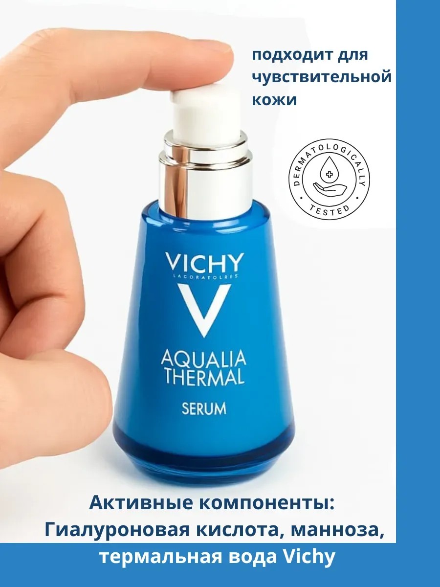 Сыворотка Vichy Aqualia Thermal — это высокоэффективное средство для всех типов кожи, включая чувствительную. В основе формулы — минерализированная термальная вода Vichy, гиалуроновая кислота и манноза, которые обеспечивают глубокое увлажнение и сохраняют водный баланс до 48 часов. Это мощный антивозрастной крем сыворотка, который помогает бороться с морщинами, снижением упругости и неровным тоном кожи. Подходит для всех типов кожи, включая чувствительную. Подходит для женщин и мужчин, подростков и возрастных 45+, 50+, 55+, 60+.