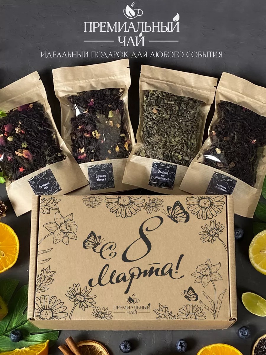 Премиальные купажи чая Подарочный набор чая в пакетиках 4 шт на 8 марта