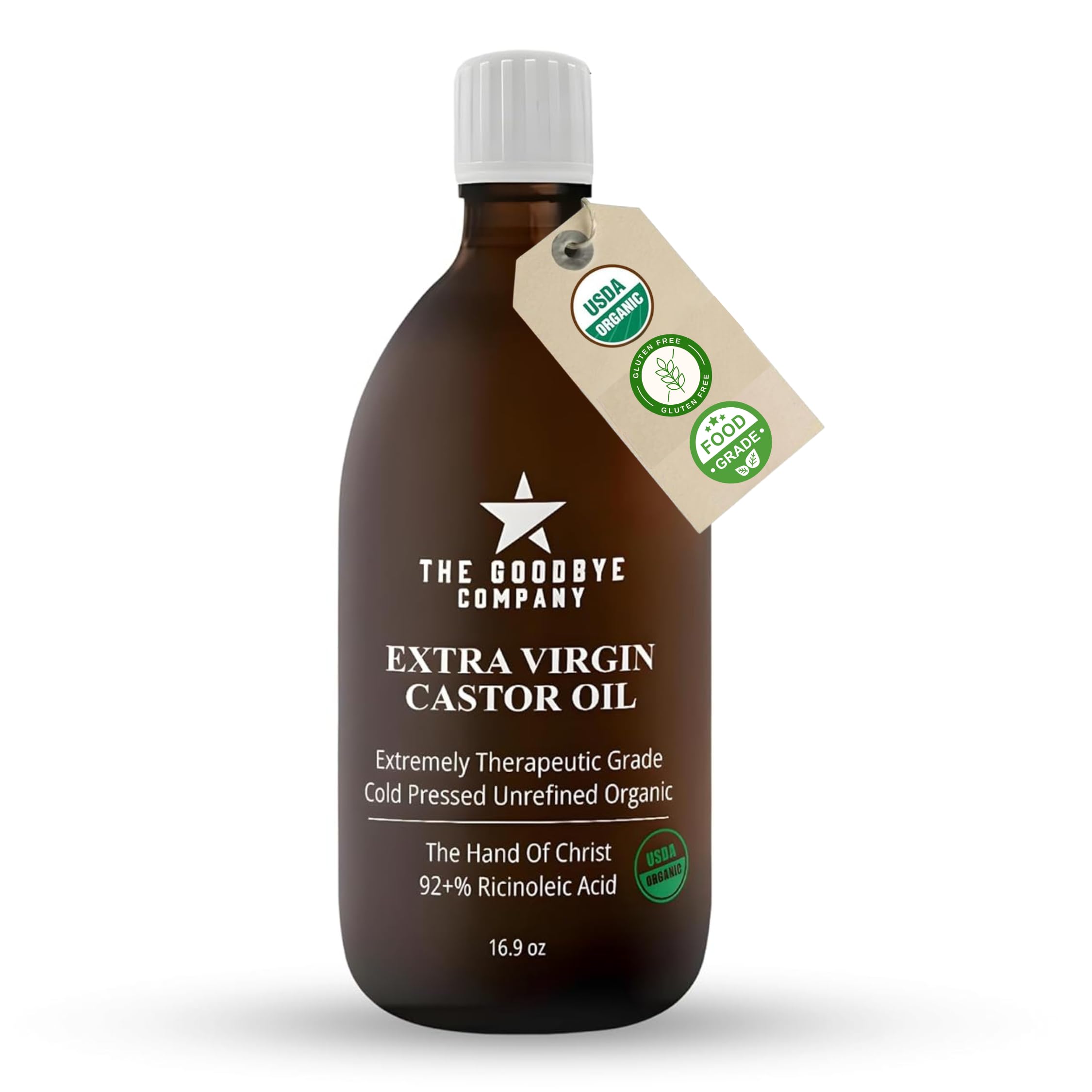 Premium USDA Organic Cold-Pressed Food Grade Castor Oil - 16.9 oz Glass Bottle, Hexane-Free, Small Batch, Extra Virgin, Ethically Sourced for Hair Growth, Skin Care, Lashes, Brows & Digestion Pure Cold-Pressed 16.9 Fl Oz (P