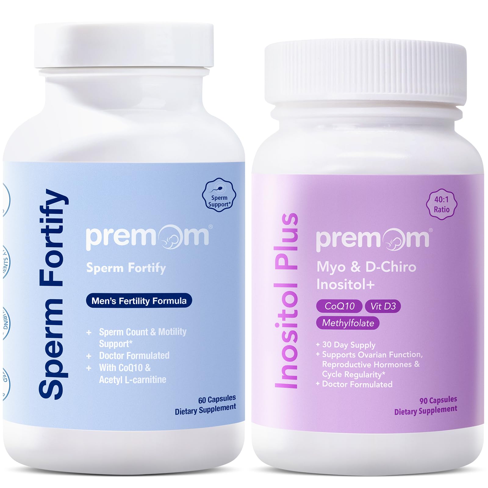 Premom Male Sperm Fortify Capsules - Male Fertility Supplements for Men Inositol Plus Bundle Fertility Support for Women 120 Count
