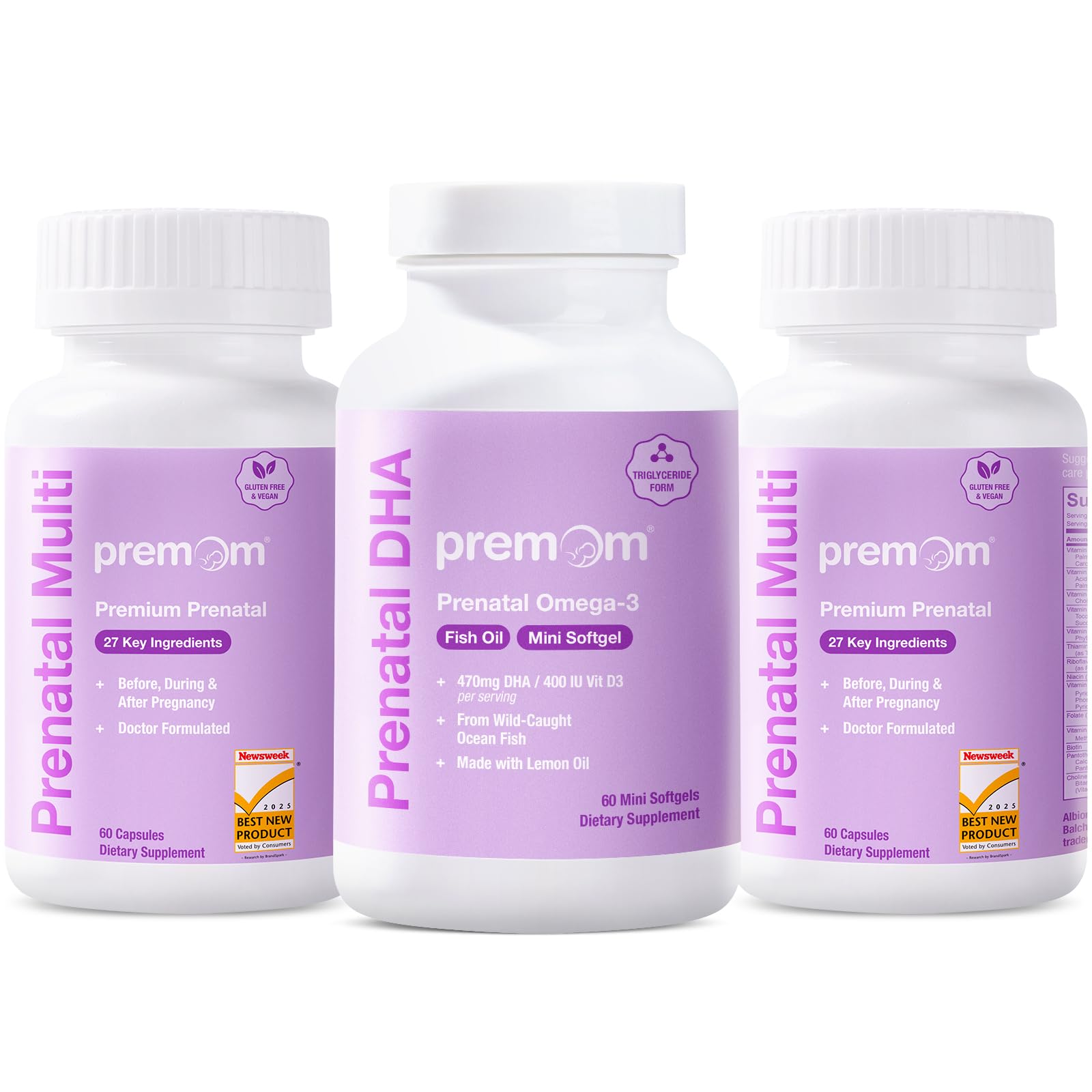 Premom Multivitamin for Women - Prenatal Formula Vitamin Supplements 2 Bottles Prenatal DHA Fish Oil 1 Bottles