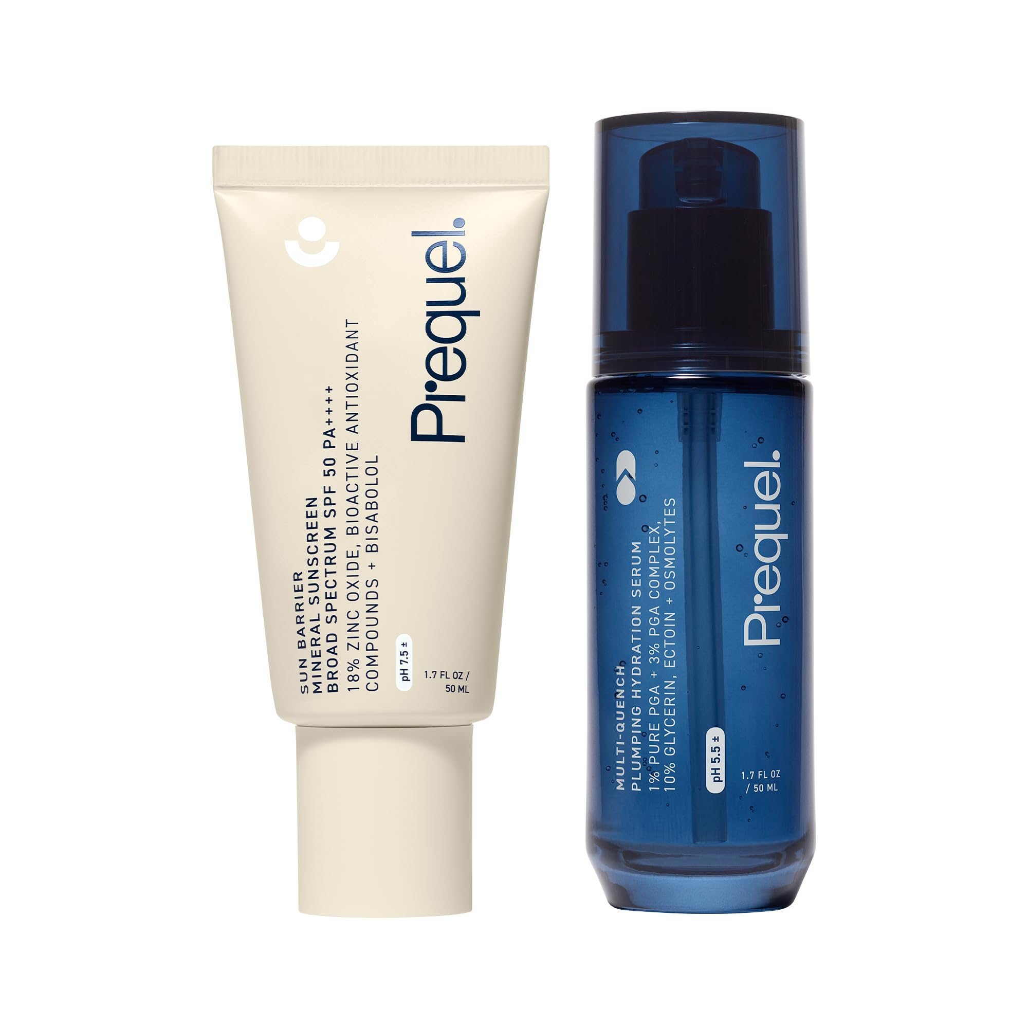 Prequel Skin Sun Barrier Mineral Sunscreen SPF 50. PA++++ Broad Spectrum & Multi-Quench Plumping Hydration Serum