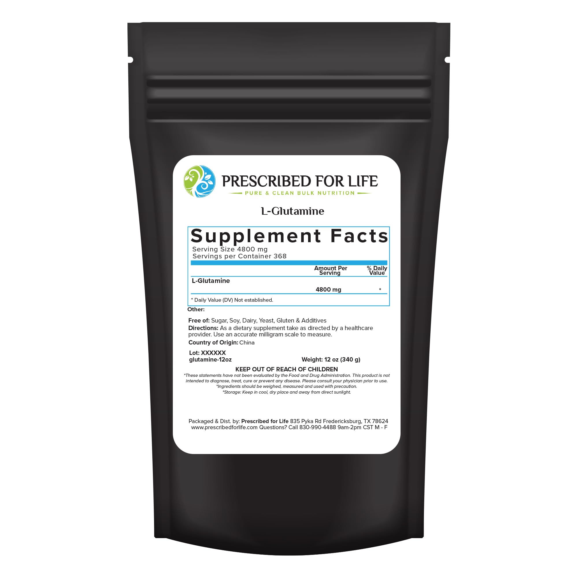 Prescribed For Life L Glutamine Powder Pure L Glutamine Amino Acids Supplement Gluten Free Vegan Kosher Non GMO (340g) 11.99 Ounce (Pack of 1)