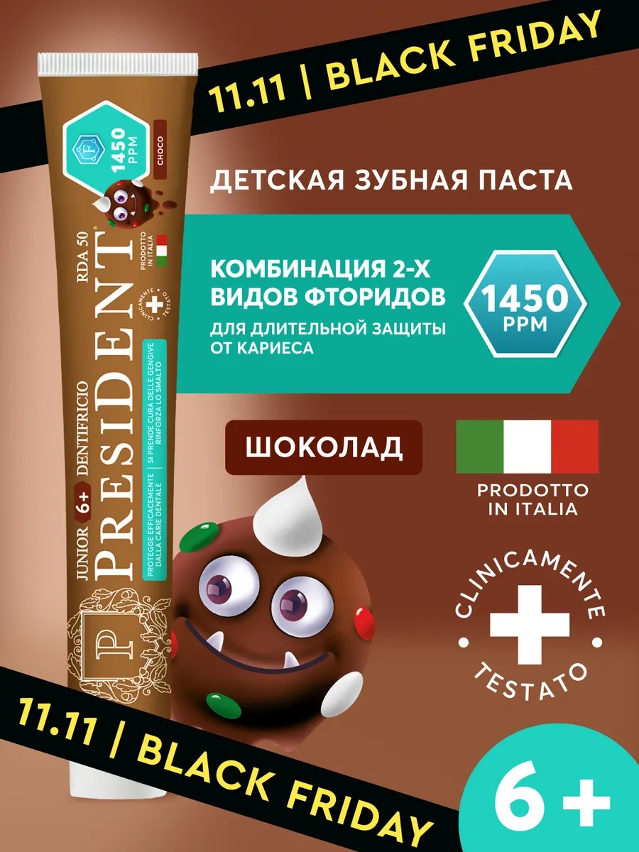 President Зубная паста детская 6+ лет со вкусом Шоколад