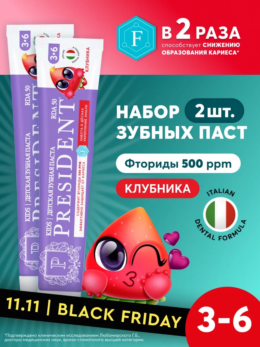 President Зубная паста детская 3-6 лет со вкусом Клубника 2шт.