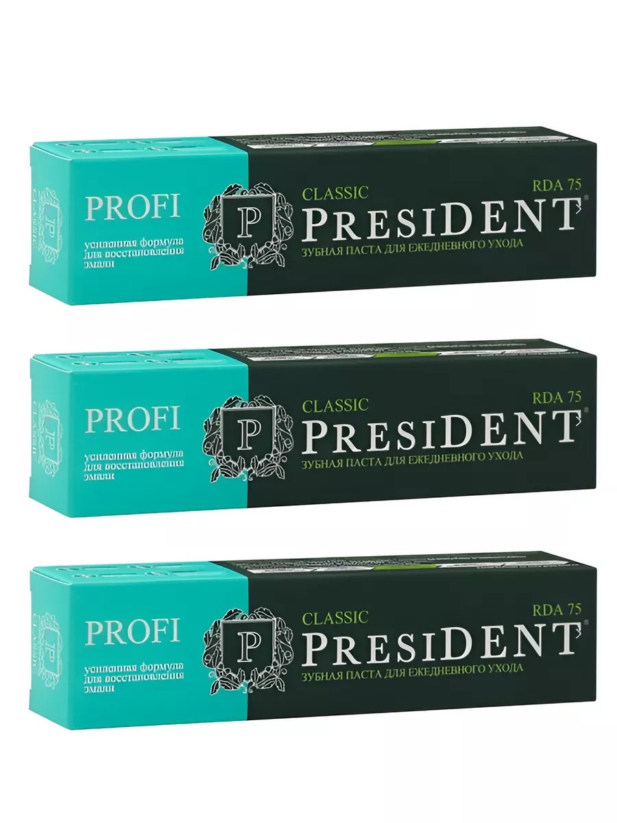 Зубная паста PRESIDENT PROFI Classic (75 RDA) - для ежедневного ухода со фтором, ксилитом и растительными антисептиками