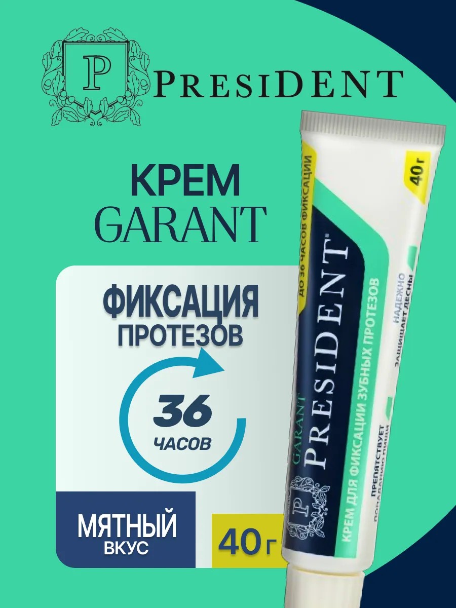 | Полное наименование товара | Крем для фиксации зубных протезов PRESIDENT GARANT, мятный вкус 40 г |
