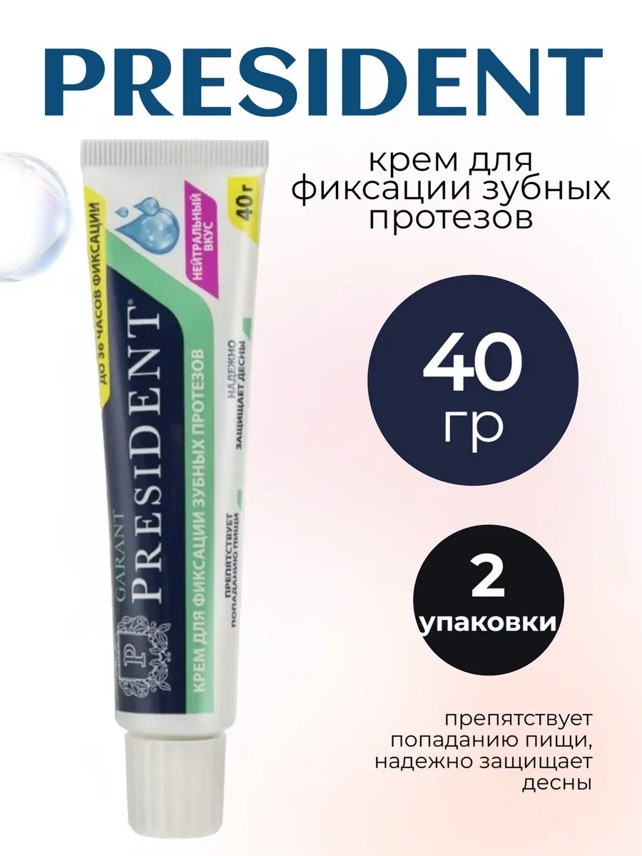Президент Крем для фиксации зубных протезов нейтр вкус 40 г/2уп