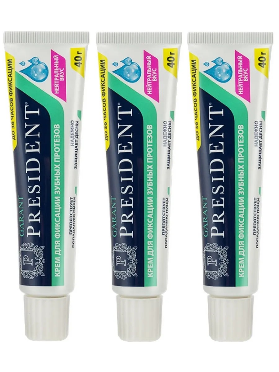 President Крем для фиксации зубных протезов с нейтральным вкусом 40 гр. - 3 шт.