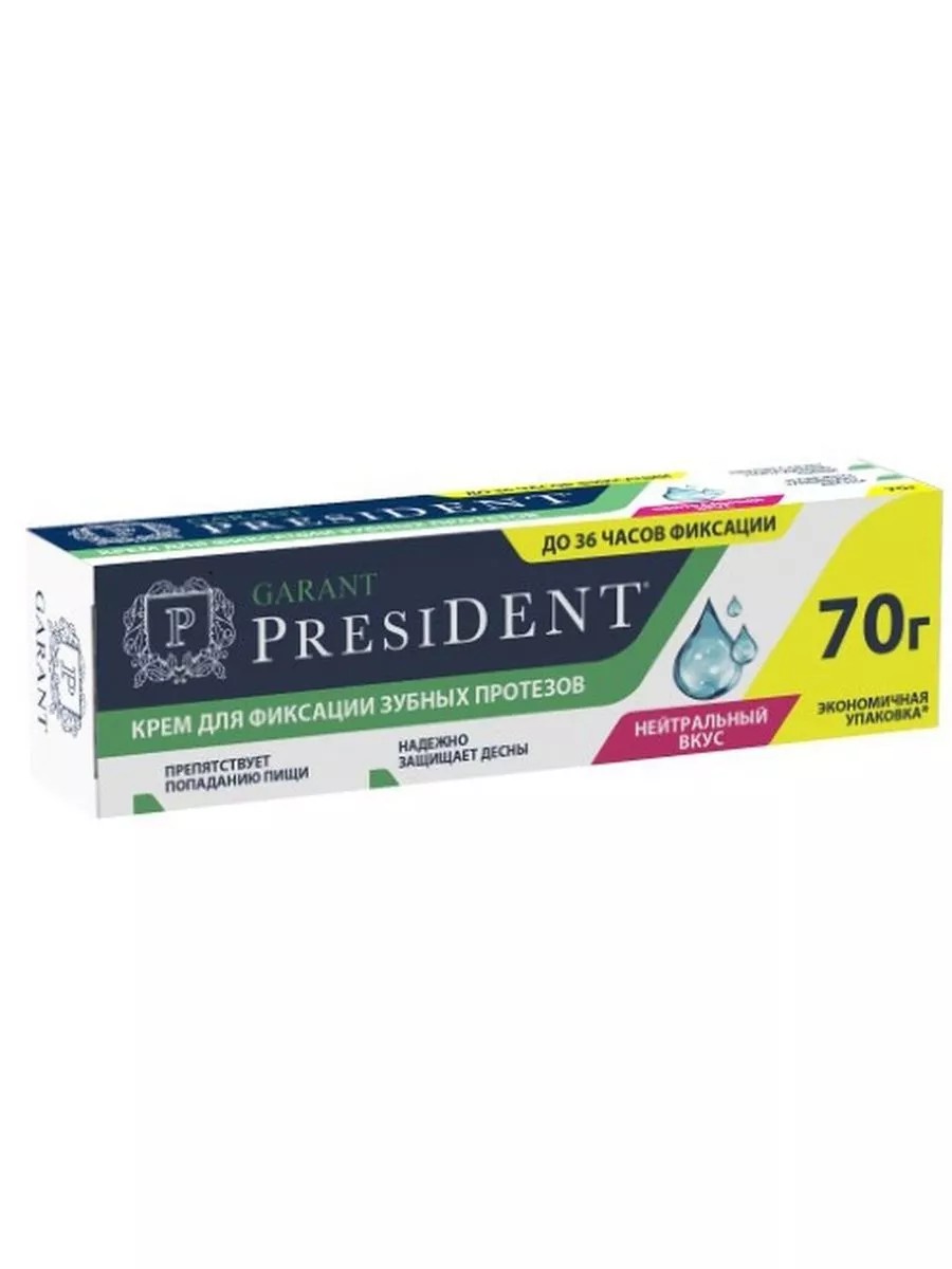 Бренд PresiDENTЛиния Forever Young - УХОД ЗА ПРОТЕЗАМИ - Специализированные средства по уходу за полостью рта для съемных и частично съемных протезов. Для тех, кто любит активно жить и улыбаться.ПРЕЗИДЕНТ КРЕМ ГАРАНТ ДЛЯ ФИКСАЦИИ ЗУБНЫХ ПРОТЕЗОВ / НЕЙТРАЛЬНЫЙ ВКУС - экстрасильная фиксация до 36 часовВнешний вид и свойства: Кремообразная консистенция, цвет розовый, без вкуса и запаха.Специальный крем обеспечивает надежную защиту десен при ношении зубных протезов.Заполняет зазоры между челюстью и протезом мягкой упругой прослойкой.Защищает пространство под протезами от попадания частиц пищи.Экономичен в применении.Активные компоненты:Содержит натуральные антибактериальные компоненты: экстракты ромашки и липы, которые помогают снизить риск воспаления десенНатриево-кальциевые соли (магнитный полимер) дают длительную фиксациюРезультат:Препятствует попаданию пищи,Надежно защищает десныСоответствует требованиям Всемирной Организации Здравоохранения (ВОЗ) и возрастным нормам.