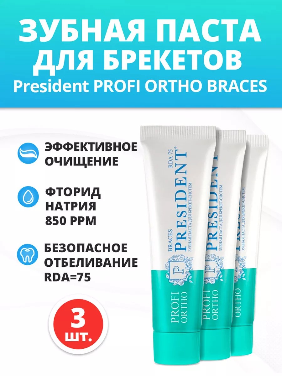 President Зубная паста для брекетов President Ortho Braces, 3 штуки