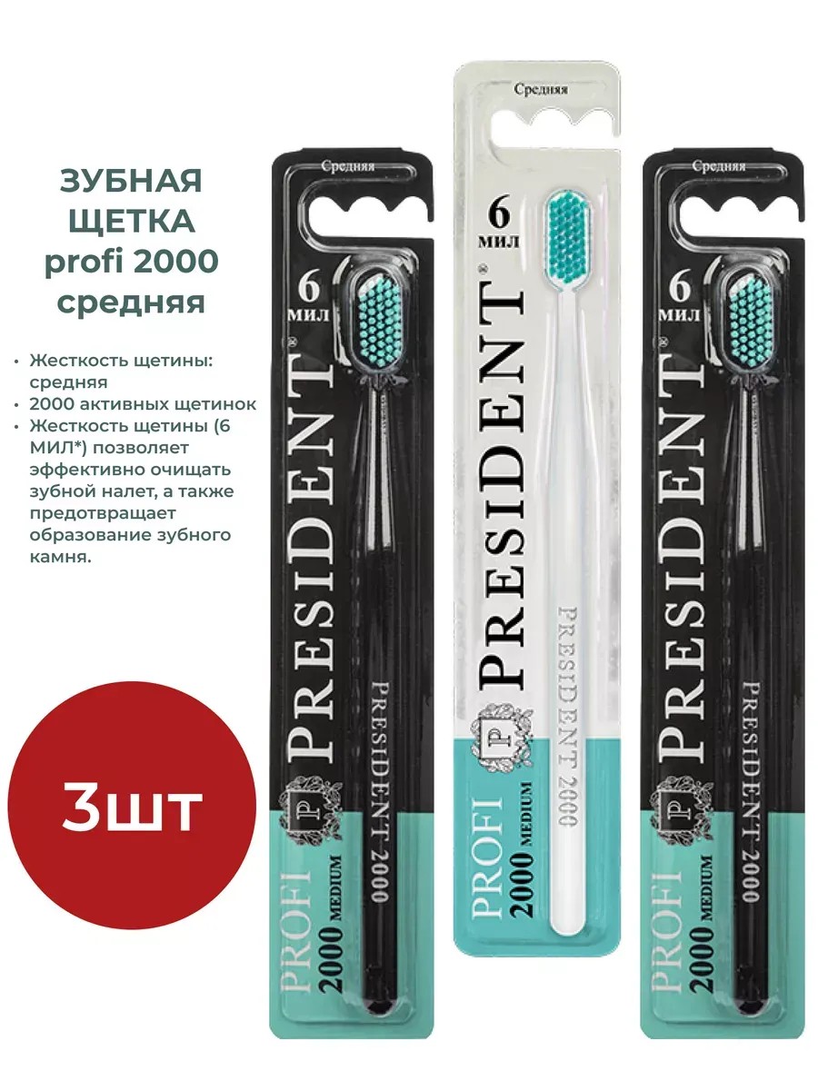 PRESIDENT Зубная щетка profi 2000 средняя-3шт