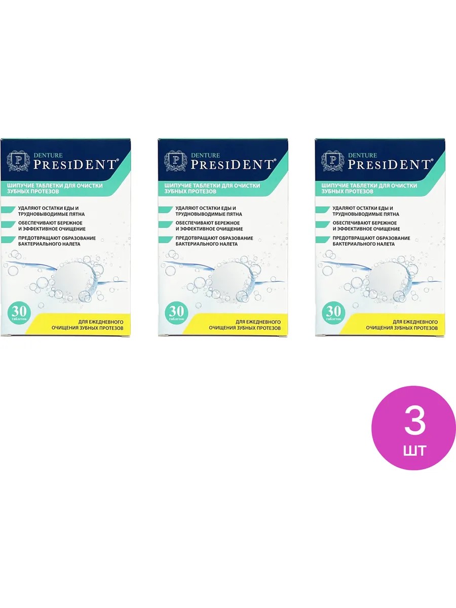 Таблетки для очищения зубных протезов President Denture шипучие, не повреждая протез механически, идеально очищают его даже в самых труднодоступных местах!