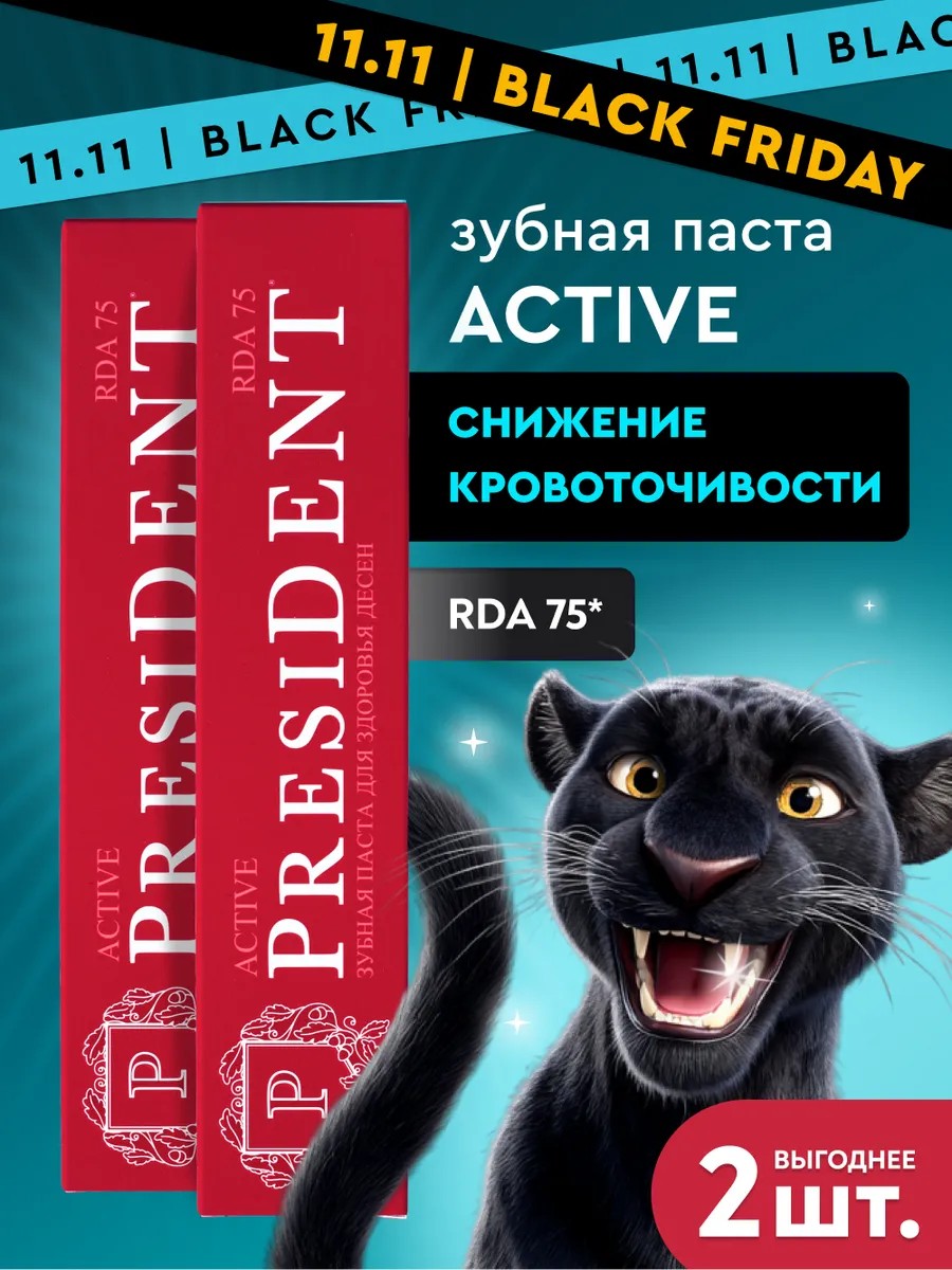 President Зубная паста от кровоточивости десен Active 2 шт.