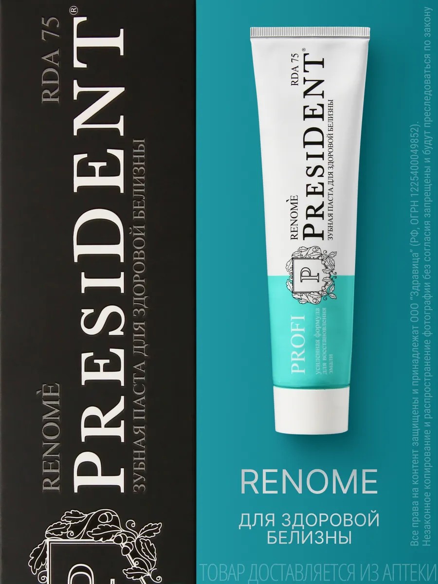 | Комплектация | President profi зубная паста renome 100 мл |