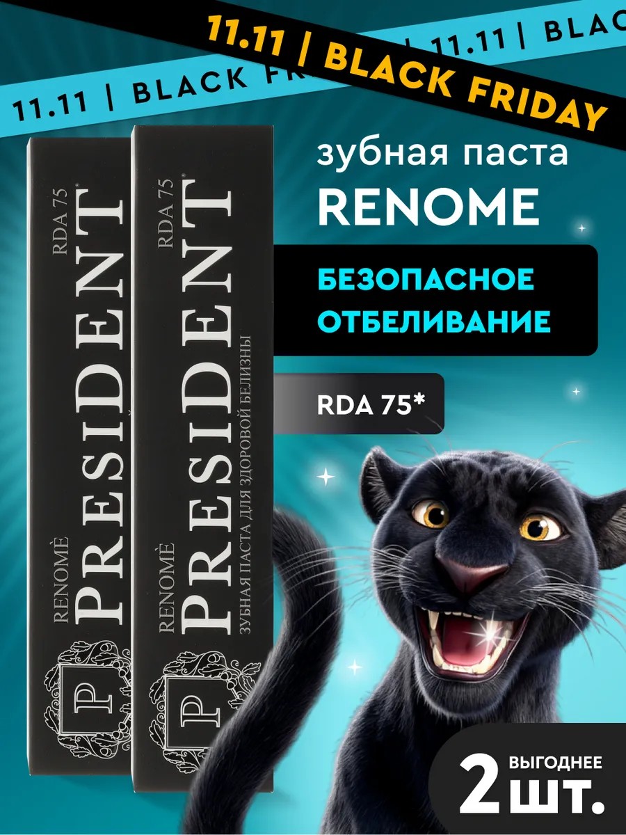 President Зубная паста отбеливающая с фтором 2 шт. Renome