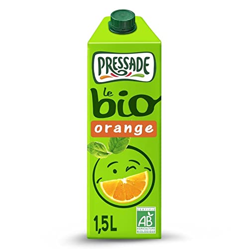 "The first organic range for the whole family, certified organic. Recipes designed for everyone: with a delicious fruity taste, sweet and pulp-free. A 1.5L family size and practical packaging that preserves the taste and quality of our products."Organic Orange Nectar 1.5L. PRESSADE. Organic juice. Fruit juice. Drinks. "La 1ère gamme BIO pour toute la famille certifiée Agriculture Biologique. Des recettes conçues pour tous : au bon goût de fruits, douces et sans pulpe. Un format 1.5L familial et un emballage pratique qui préserve le goût et la qualité de nos produits."Nectar Bio Orange 1.5L. PRESSADE. Jus biologique. Jus de fruits. Boissons.