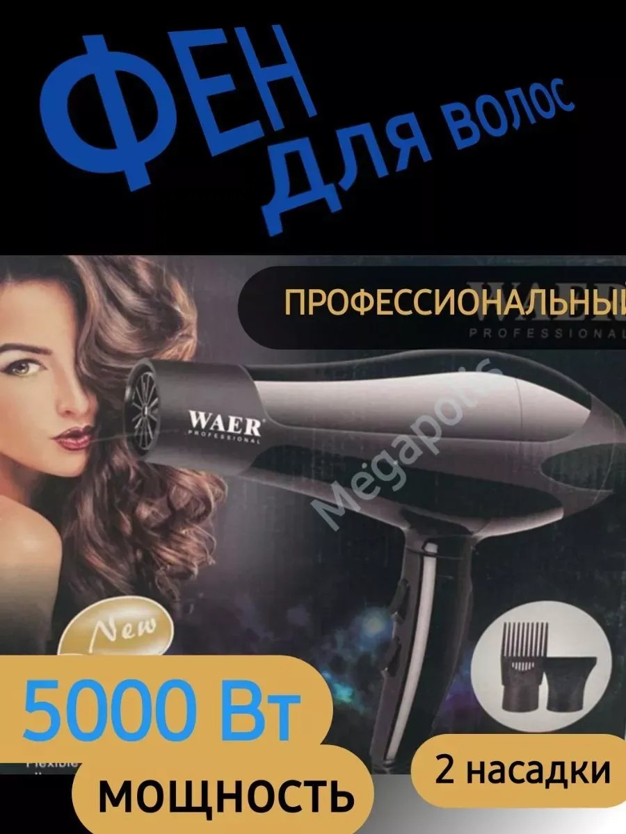 Фен WAER8841 — это идеальный фен, что сделает Ваши волосы еще более шелковистыми, ухоженными и красивыми. Данная модель имеет высокую мощность, поэтому укладка с его помощью должна быть быстрой и легкой. Корпус фена сделан из качественного термостойкого пластика, который гарантирует длительный срок службы инструмента. Максимальное удобство в использовании достигается благодаря высочайшей эргономике и сбалансированному распределению веса. Удобная ручка, металлический фильтр, идеальная форма и небольшой размер корпуса. При этом есть возможность регулировки трех температурных режимов и двух скоростей воздушного потока, что позволяет подбирать необходимые режимы работы под каждую укладку и тип волос. Фен таким образом заботится о них и не дает пересушить. Подача холодного воздуха позволит закрепить прическу и сделать её более устойчивой. Петелька для подвешивания создает дополнительное удобство при использовании. Реальная максимальная мощность - 5000 Вт . 2 температурных режима , 2 режима скорости воздушного потока Фронтальное расположение кнопок. Съемный металлический фильтр. В комплекте 2 насадки.Использование бренда исключительно для поиска!!!