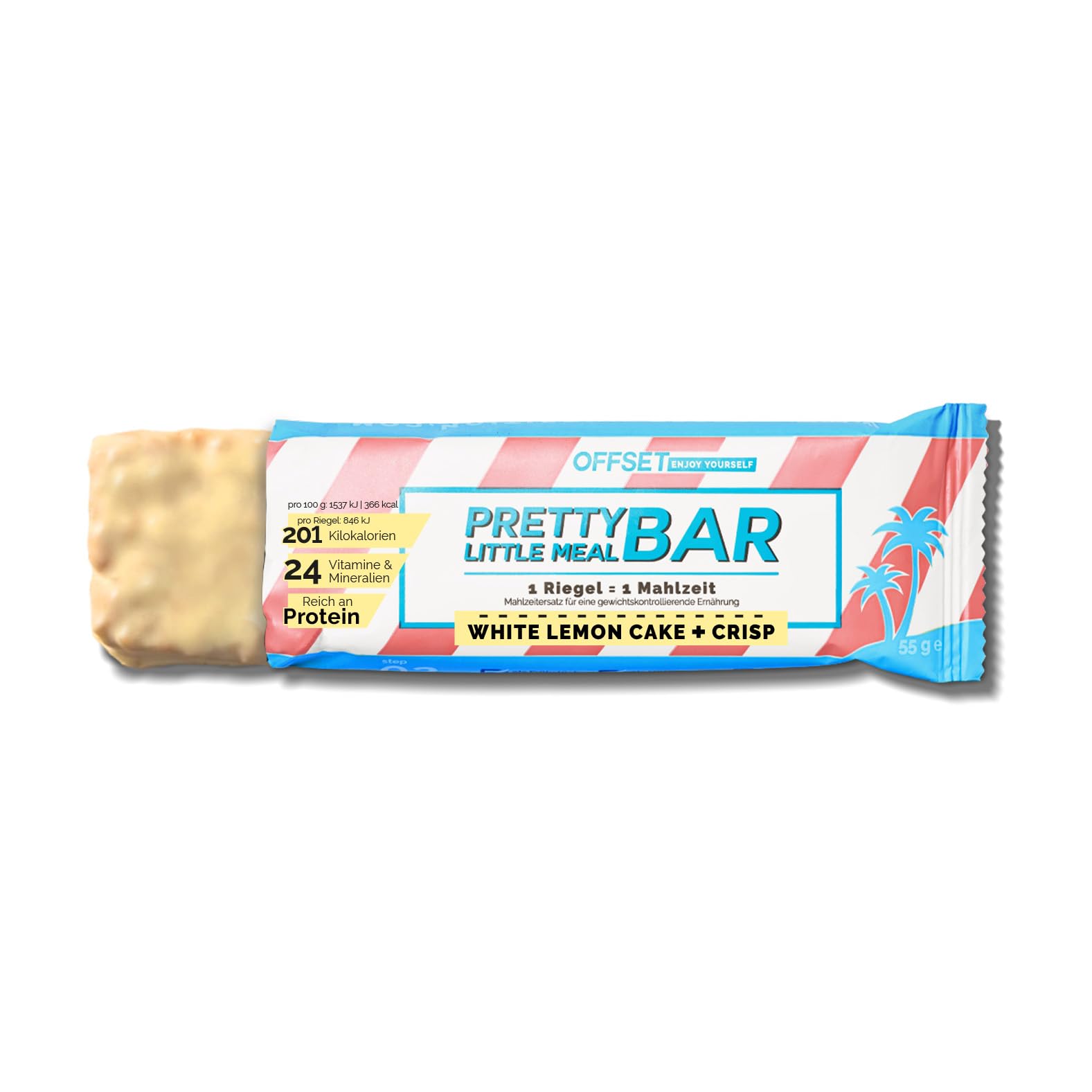 Discover the all-drin meal What if we tell you that you can cheat with a clear conscience from now onKeep your weightBetter to lose weight and change your dietGet away from the sugarYour Pretty Little Meal is there for you! Now also as a bar directly consumed, full -fledged meal perfect for on the go 100 vegan lactose -free Meal as breakfast, lunch or dinner That is in it saturating oatmeal without gluten Crisps from buffreis up to 16 g vegan protein from soy 24 vitamins minerals important fiber important vitamins for hair, skin nails a maximum of 215 calories Pretty Little Meal supports you in losing weight and holding weight, If you replace 2 or 1 main meals a day with a Pretty Little Meal bar as part of a low-calorie diet. Based on the effects according to HCVO of the European Food Safety Authority: The replacement of 2 main meals a day by a Pretty Little Meal meal wears to lose as part of a low-calorie diet, such as our offset plan. The replacement of 1 main meal a day by a Pretty Little Meal meal contributes to this as part of a low-calorie diet, such as our offset plan, to keep the weight after weight loss. The proteins contained in the Pretty Little Meal contribute to the preservation of muscle mass. The biotin contained in the Pretty Little Meal supports the preservation of healthy hair and skin. The selenium contained in the Pretty Little Meal supports the preservation of healthy hair and nails. The iodine contained in the Pretty Little Meal supports the preservation of healthy skin.: Our step-by-step plan helps to learn and enjoy a healthy, balanced diet-for a new feeling of wellbeing and long-term success.-: With the biotin, selenium and iodine it contains, the Pretty Little Meal meal steals healthy hair, skin and nails while you pamper yourself.-: Enjoy delicious meals while you keep your weight or take off- with the Pretty Little Meal bar you can compensate for your calorie and nutrient balance after a cheat day.-: Each bar delivers up to 16g of vegetable protein for a balanced diet and thus supports you in maintaining your muscle mass.---: perfect, full meal for on the go, 100 vegan lactose-free, 1 bar 1 meal.ENTDECKE DIE ALLES-DRIN-MAHLZEIT Was wäre wenn wir dir sagen, dass du ab jetzt mit gutem Gewissen cheaten darfstDein Gewicht haltenLieber abnehmen und deine Ernährung umstellenVom Zucker wegkommenDein Pretty Little Meal ist für dich da! JETZT AUCH ALS RIEGEL direkt verzehrfertige, vollwertige Mahlzeit perfekt für unterwegs 100 vegan laktosefrei Mahlzeit als Frühstück, Mittag- oder Abendessen DAS STECKT DRIN sättigende Haferflocken ohne Gluten Crisps aus Puffreis bis zu 16 g veganes Protein aus Soja 24 Vitamine Mineralien wichtige Ballaststoffe wichtige Vitamine für Haare, Haut Nägel maximal 215 Kalorien Pretty Little Meal unterstützt dich beim Abnehmen und Gewichthalten, wenn du 2 beziehungsweise 1 Hauptmahlzeiten am Tag mit je einer Pretty Little Meal-Riegel im Rahmen einer kalorienarmen Ernährung ersetzt. Basierend auf den Wirkaussagen nach HCVO der Europäischen Behörde für Lebensmittelsicherheit: Das Ersetzen von 2 Hauptmahlzeiten am Tag durch je eine Pretty Little Meal-Mahlzeit trägt im Rahmen einer kalorienarmen Ernährung, wie unserem OFFSET-Plan, dazu bei Gewicht zu verlieren. Das Ersetzen von 1 Hauptmahlzeit am Tag durch je eine Pretty Little Meal-Mahlzeit trägt im Rahmen einer kalorienarmen Ernährung, wie unserem OFFSET-Plan, dazu bei, das Gewicht nach Gewichtsabnahme zu halten. Die im Pretty Little Meal enthaltenen Proteine tragen zur Erhaltung von Muskelmasse bei. Das im Pretty Little Meal enthaltene Biotin unterstützt die Erhaltung gesunder Haare und Haut. Das im Pretty Little Meal enthaltene Selen unterstützt die Erhaltung gesunder Haare und Nägel. Das im Pretty Little Meal enthaltene Jod unterstützt die Erhaltung gesunder Haut.: Unser Schritt-für-Schritt-Plan hilft, eine gesunde, ausgewogene Ernährung zu erlernen und zu genießen - für ein neues Wohlfühlgefühl und langfristigen Erfolg. -: mit dem enthaltenen Biotin, Selen und Jod fördert der Pretty Little Meal Riegel gesunde Haare, Haut und Nägel, während du dich verwöhnst. -: Genieße leckere Mahlzeiten, während du dein Gewicht hältst oder abnimmst - mit dem Pretty Little Meal Riegel kannst Du nach einem Cheat Day deine Kalorien- und Nährstoffbilanz gut ausgleichen. -: Jeder Riegel liefert bis zu 16g pflanzliches Protein für eine ausgewogene Ernährung und unterstützt dich somit bei der Erhaltung deiner Muskelmasse. ---: Perfekte, vollwertige Mahlzeit für unterwegs, 100 vegan laktosefrei, 1 Riegel 1 Mahlzeit.Pretty Little Meal Bar White Lemon Cake Crisp von OFFSET Nutrition, Proteinriegel als vollwertige Mahlzeit, 201 Kalorien pro Portion, mit weißer Schokolade und Zitronenkuchen-Geschmack, 6 Stück White Lemon Cake Crisp
