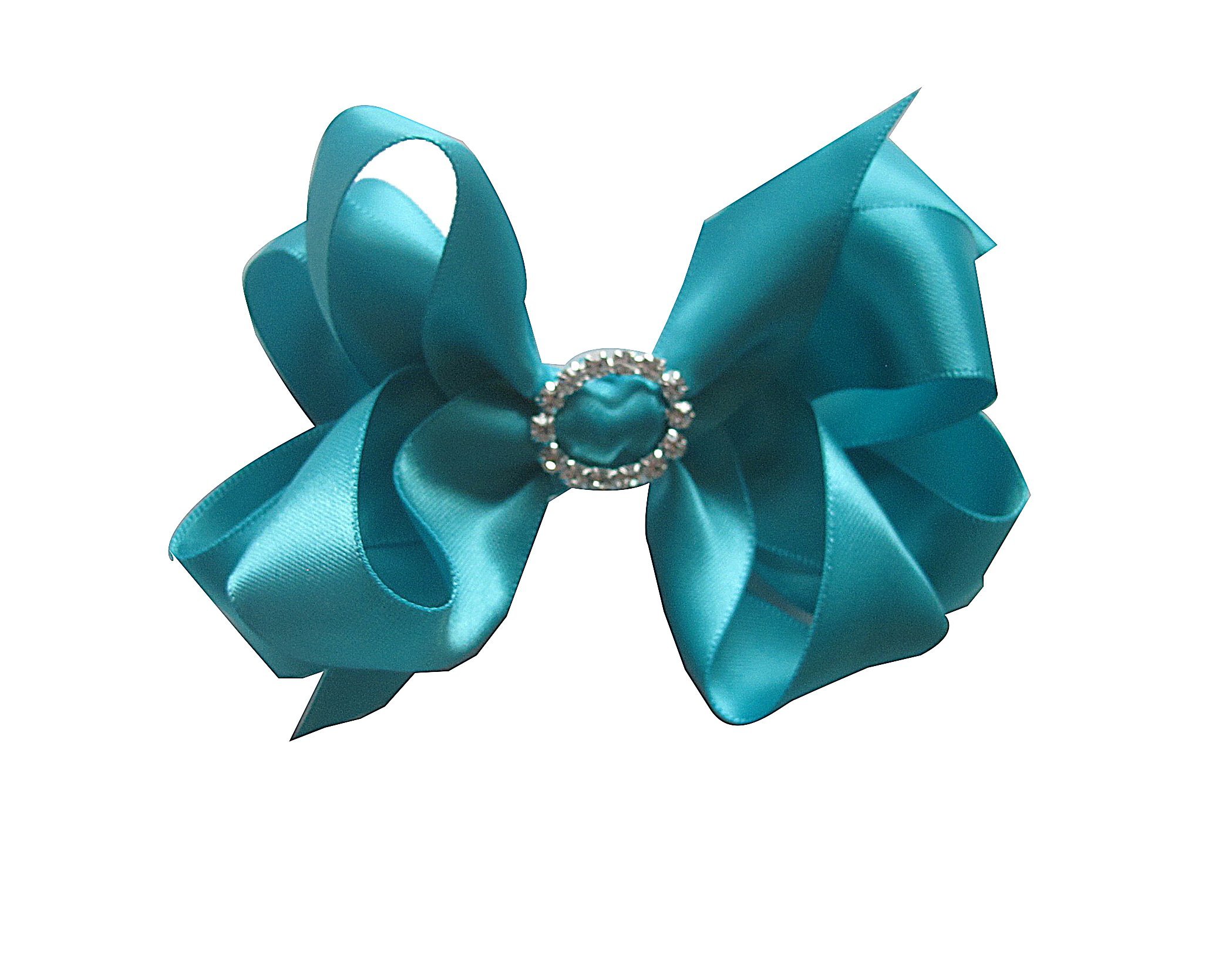 PrettyBoutique 4.5 Inches Girls Rhinestone Satin Hair Bow Alligator Clip (Teal)