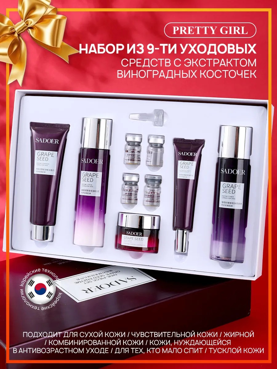 Комплексный набор средств для ежедневного ухода за кожей лица от SADOER включает очищающее молочко, тонер, сыворотку-эмульсию, крем для век, крем для лица и сыворотку для лица. Этот набор разработан для глубокого очищения, увлажнения и питания кожи, а также для восстановления и защиты кожи от негативных факторов окружающей среды. Продукты подходят для всех типов кожи, включая сухую, жирную, комбинированную и чувствительную.
