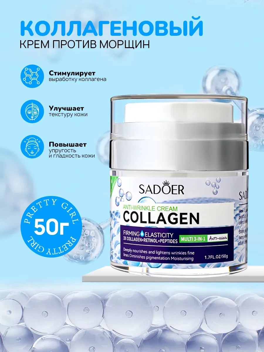 Крем для лица и век с коллагеном против морщин 50 г