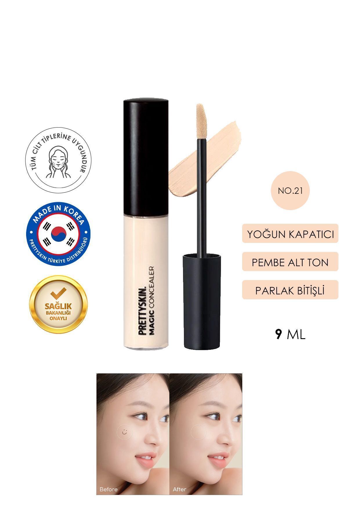 Prettyskin MagicConcealer Gün boyu kalici ve cildi aydinlatir. Koyu halkalari, lekeleri vediger kusurlari gizler.