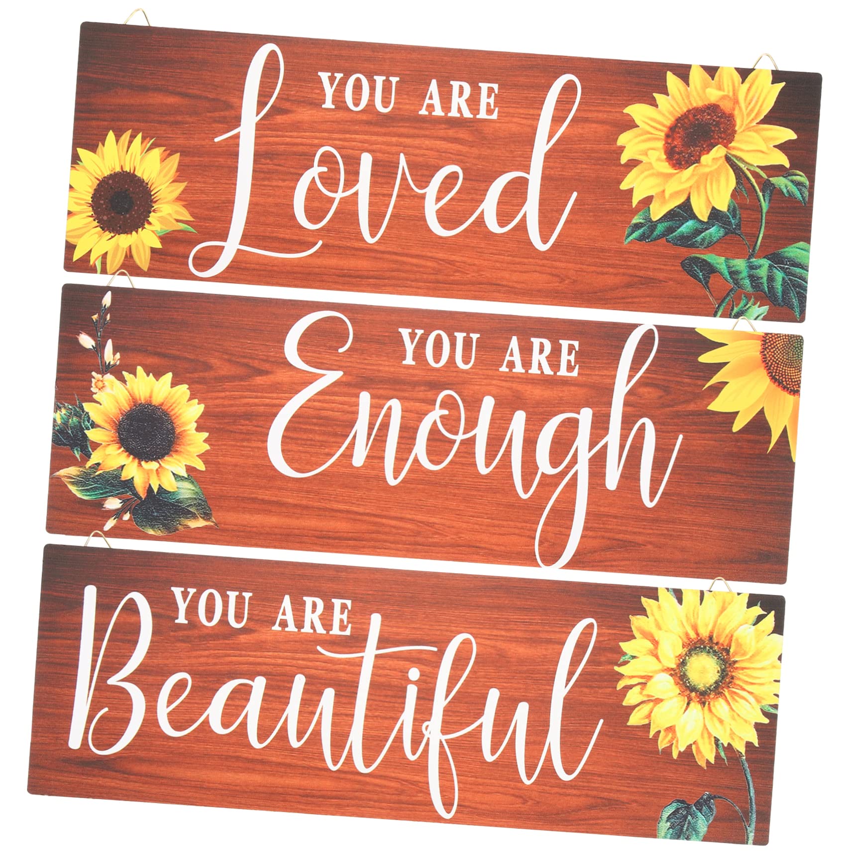 Package List 3 x wall art signs Characteristics -Color:Light Brown home wall decor -Size:30.00X10.00X0.50cm 11.79X3.93X0 rustic wall decor. -Material:Wood wall decor -The wall art signs can be applied to smooth, clean, dry surfaces such as tile, wood, metal, glass, etc wall art decor. -Brighten your heart with positive words, bring warmth to your life, and remind yourself to enjoy life sunflower wall art sign. -The wall art decor is suitable for multi-scene, living room, kitchen, bedroom, bar, restaurant, hotel, etc wall decor living room. -This creative wall art decoration can let your wall looks more charming and artistic wooden wall sign. -The wall art decor is made of high-class wood material, which has the living room wall decor. Goods Description floral decorations Are you still looking for creative and artistic home wall decor? This wall art decor will meet your needs well.living room wall decor With creative design, this wall decor is great to add some artistic and elegant atmosphere to your room or homeWood wall sign: these wooden wall signs can decorate your room, and bring a warm feeling to your home. Sunflower wall art sign: the wall art signs can be applied to smooth, clean, dry surfaces such as tile, wood, metal, glass, etc. Bedroom: creative wall artwork, easily light up your home decoration and bring your more visual enjoyment. Flower garland decorations: this creative wall art decoration can let your wall looks more charming and artistic. Fall garlands for decor: perfectly decorate your space and show your taste, make your home looks different and more attractive.