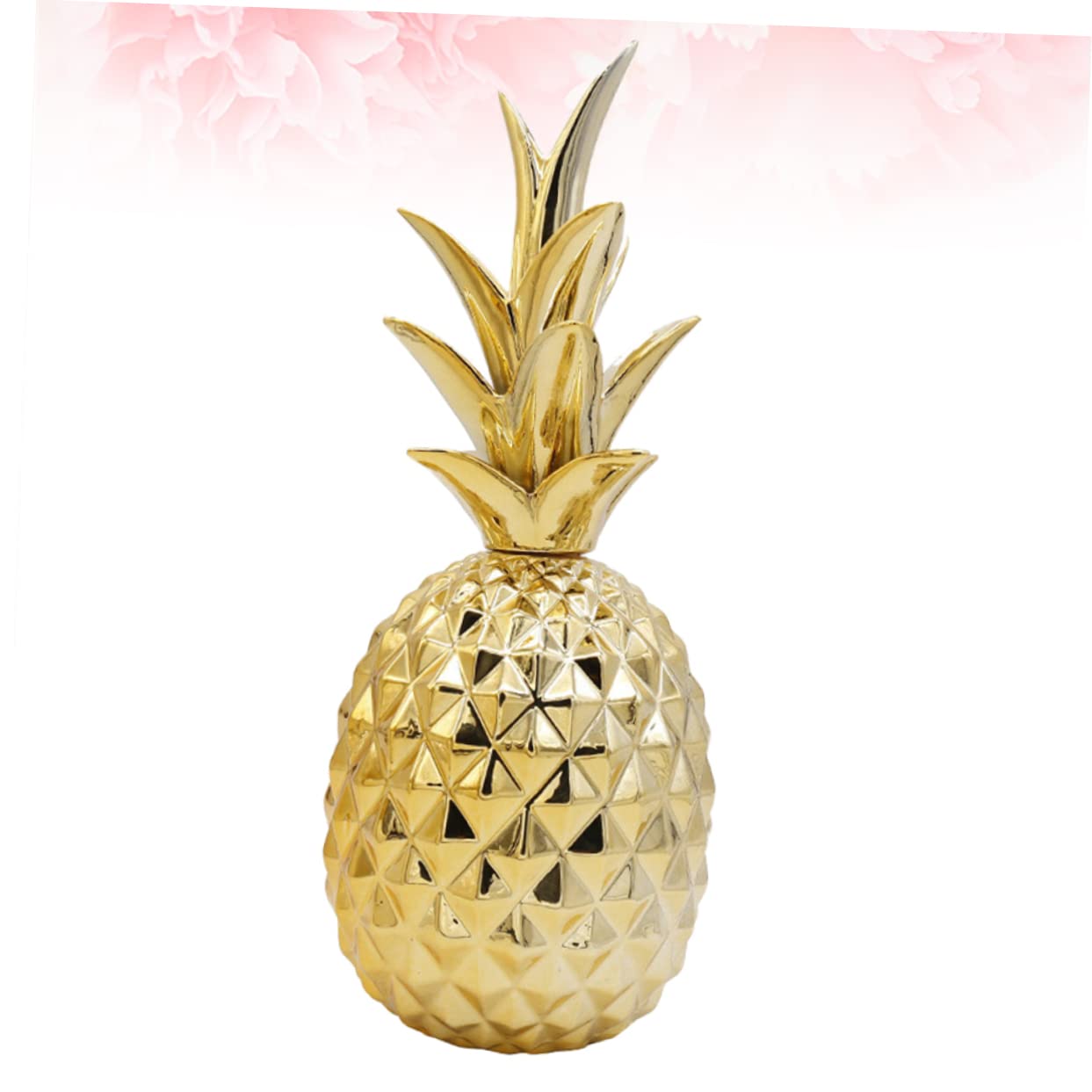 PRETYZOOM Ornament Decor Pineapple Crafts Ceramics Plant Golden 30X10 cm