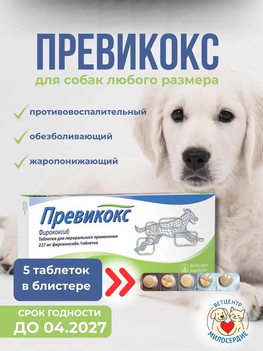 Превикокс 227 мг — это современный противовоспалительный препарат для собак на основе фирококсиба. Применяется для быстрого снятия боли, воспаления и отёка при артрите, остеоартрозе, травмах и после операций. Таблетки имеют приятный вкус, поэтому легко принимаются животными.