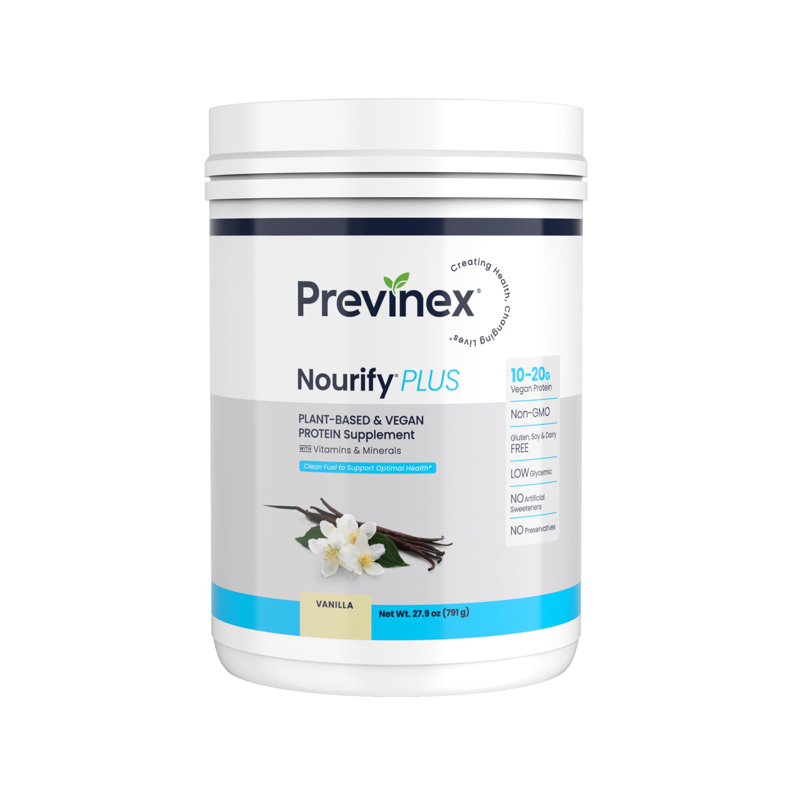 Previnex Nourify Plus Plant-Based Protein Shake - All Natural Vegan Protein Powder High Protein & Low Sugar Gluten Free Soy Free & Dairy Free Vanilla Protein Powder (27.7 oz)