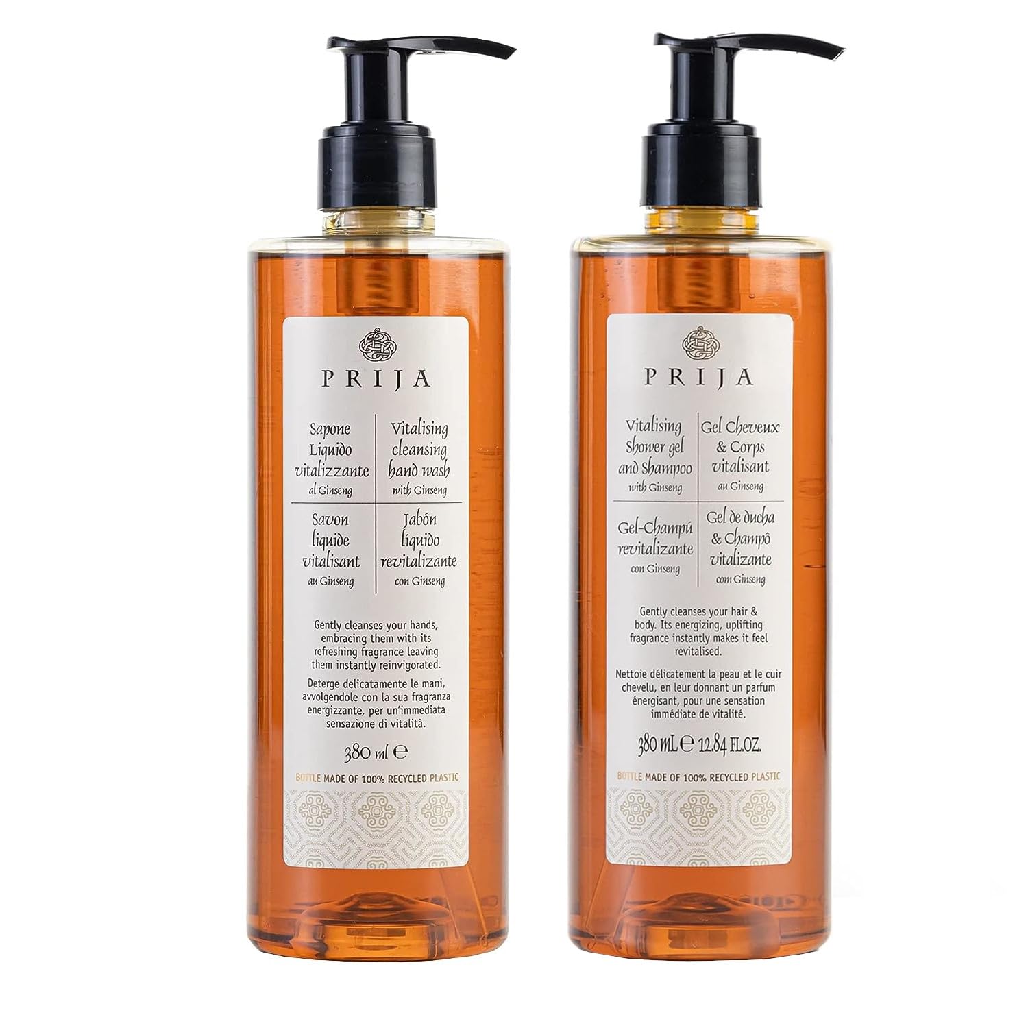 Product Details: Product: 1 x Ginseng Liquid Soap 1 x Shampoo for Skin and Hair 2 x Pump Dispensers Series: Prija Scent: Ginseng Contents: 2 x 380 ml Color: Bronze Made in Italy "The fragrance of Italy!" Ingredients: Aqua, Sodium Laureth Sulfate, Cocamidopropyl Betaine, Disodium Laureth Sulfosuccinate, Cocamide DAE, Parfum, Sodium Chloride, Tetrasodium EDTA, Glycerin, Propylene glycol, Polyquaternium-7, Citric acid, Panax Ginseng Extract, Magnesium Nitrate, CI 19140, CI 14720, Methylchloroisothiazolinone, Magnesium chloride, Methylisothiazolinone, CI 28440, CI 42090, Hexyl Cinnamal, Limonene. OOPI REVIO-R-E-G-0316 Liquid Soap - From the Prija series, this fragrance captivates with its spicy yet sweet note, its toning and supple properties, and its ginseng extracts. The fortifying properties of the ginseng plant have been known in the East for centuries extracts of this plant stimulate the Vitality and energy. Packaged in a transparent PET plastic container. 380ml. Prija cleansers and creams are characterized by their high content of plant extracts from botanical regions of the Western and Eastern worlds. These extracts provide their natural and beneficial properties through a specially developed hypoallergenic formula and special fragrances with subtle aromatherapy benefits. SAFETY WARNING Avoid contact with eyes.Optimal skin care: This liquid soap is also suitable for allergy sufferers and can be used without any problems. It preserves the skin's natural protective layer and is therefore moisturizing. Normal, oily, dry, and sensitive skin can all be cleansed with this gentle, natural soap. Paraben-free and silicone-free. Ginseng liquid soap for daily hand hygiene. Gently cleanses hands with the enveloping fragrance of Prija for an immediate feeling of vitality and well-being. The special aromatherapy fragrances are extracted from exotic plants from around the world. Enjoy the natural and beneficial properties of PRIJA cosmetic products.Prija Savon liquide cheveux et corps revitalisant au ginseng 2 x 380 ml Soap Wellness Spa Gel douche Shampoing cheveux SavonDESCRIPTION DU PRODUIT DESCRIPTION DU PRODUIT Détails du produit : produit : 1 x savon liquide au ginseng 1 x shampooing pour la peau et les cheveux 2 x distributeurs à pompe Série : Prija Odeur : ginseng Contenu : 2 x 380 ml Couleur : bronze Fabriqué en Italie « Le parfum de l'Italie ! » Ingrédients : Aqua, Sodium Laureth Sulfate, Cocamidopropyl Betaine, Disodium Laureth Sulfosuccinate, Cocamide DAE, Parfum, Sodium Chloride, Tetrasodium EDTA, Glycerin, Propylene glycol, Polyquaternium-7, Citric acid, Panax Ginseng Extract, Magnésium Nitrate, C.I. 19140, CI I4720, Methylchloroisothiazolinone, Magnésium chloride, Methylisothiazolinone, C.I. 28440, CI 42090 Hexyl Cinnamal, Limonène Savon liquide OOPI REVIO-R-E-G-0316 - De la série Prija, le parfum séduit par sa note épicée mais douce, ses propriétés tonifiantes et souples, avec des extraits de ginseng, les propriétés fortifiantes de la plante de ginseng sont connues en Orient depuis de nombreux siècles, les extraits de cette plante stimulent la vitalité et l'énergie. E dans un plastique PET transparent. kon 380ml Les produits nettoyants et les crèmes Prija se caractérisent par la teneur en extraits de plantes provenant des régions botaniques du monde occidental et oriental. Ils donnent leurs propriétés naturelles et bénéfiques à partir d'une composition hypoallergénique spécialement développée, ainsi que de parfums spéciaux aux capacités aromathérapiques légères. AVERTISSEMENT DE SÉCURITÉ Éviter tout contact avec les yeuxSoin optimal de la peau : le savon liquide convient également aux personnes souffrant d'allergies et peut être utilisé sans problème. Elle préserve la couche protectrice naturelle de la peau et est donc hydratante. Les peaux normales, grasses, sèches et sensibles peuvent être nettoyées avec ce savon naturel et doux. Sans paraben et sans silicone. Savon liquide au ginseng pour l'hygiène quotidienne des mains. Nettoie en douceur les mains avec le parfum enveloppant de Prija pour une sensation immédiate de vitalité et de bien-être. Les parfums d'aromathérapie spéciaux sont extraits de plantes exotiques du monde entier. Profitez des propriétés naturelles et bénéfiques des produits cosmétiques de PRIJA.
