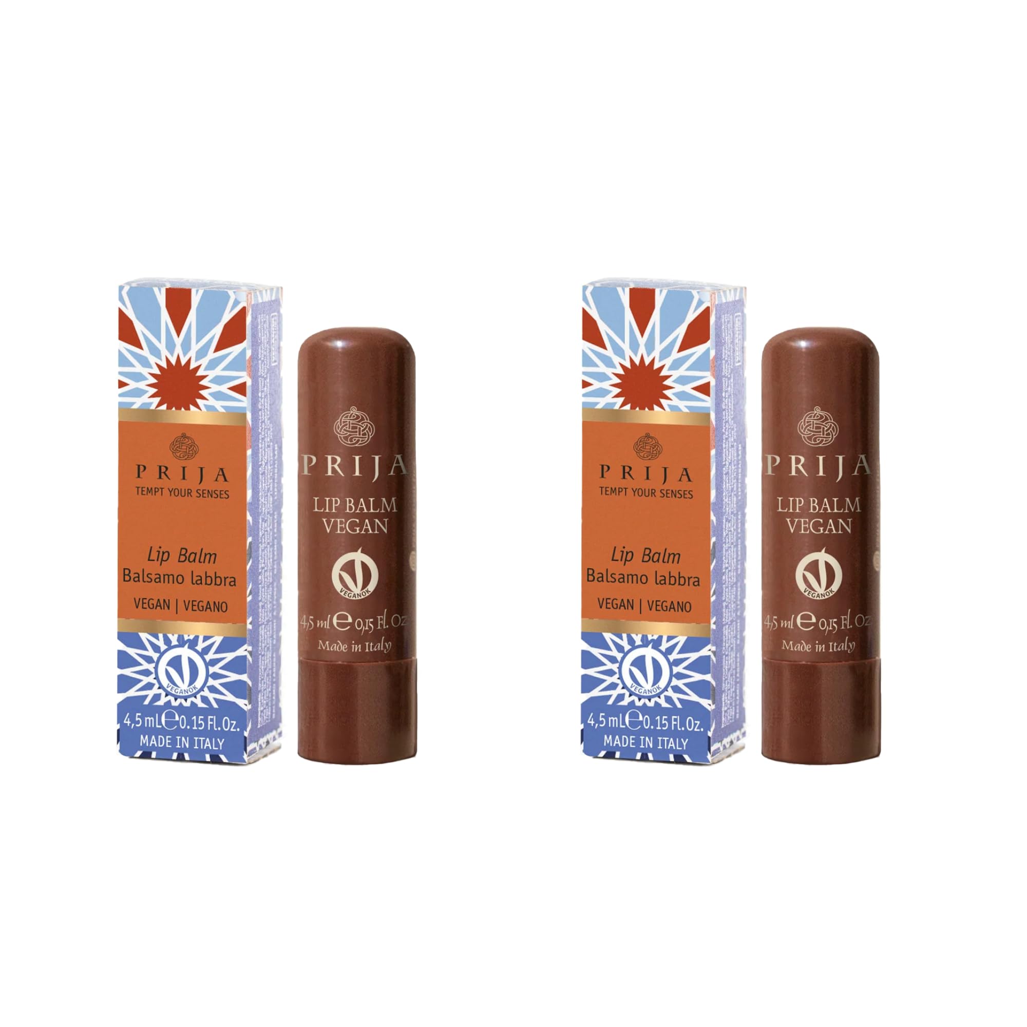 Prija Vegan Lip Balm with Jojoba Oil Shea Butter and Sunflower Wax Pampers your Lips Naturally Hydrating Lip Balm Stick 2 x 4.5ml
