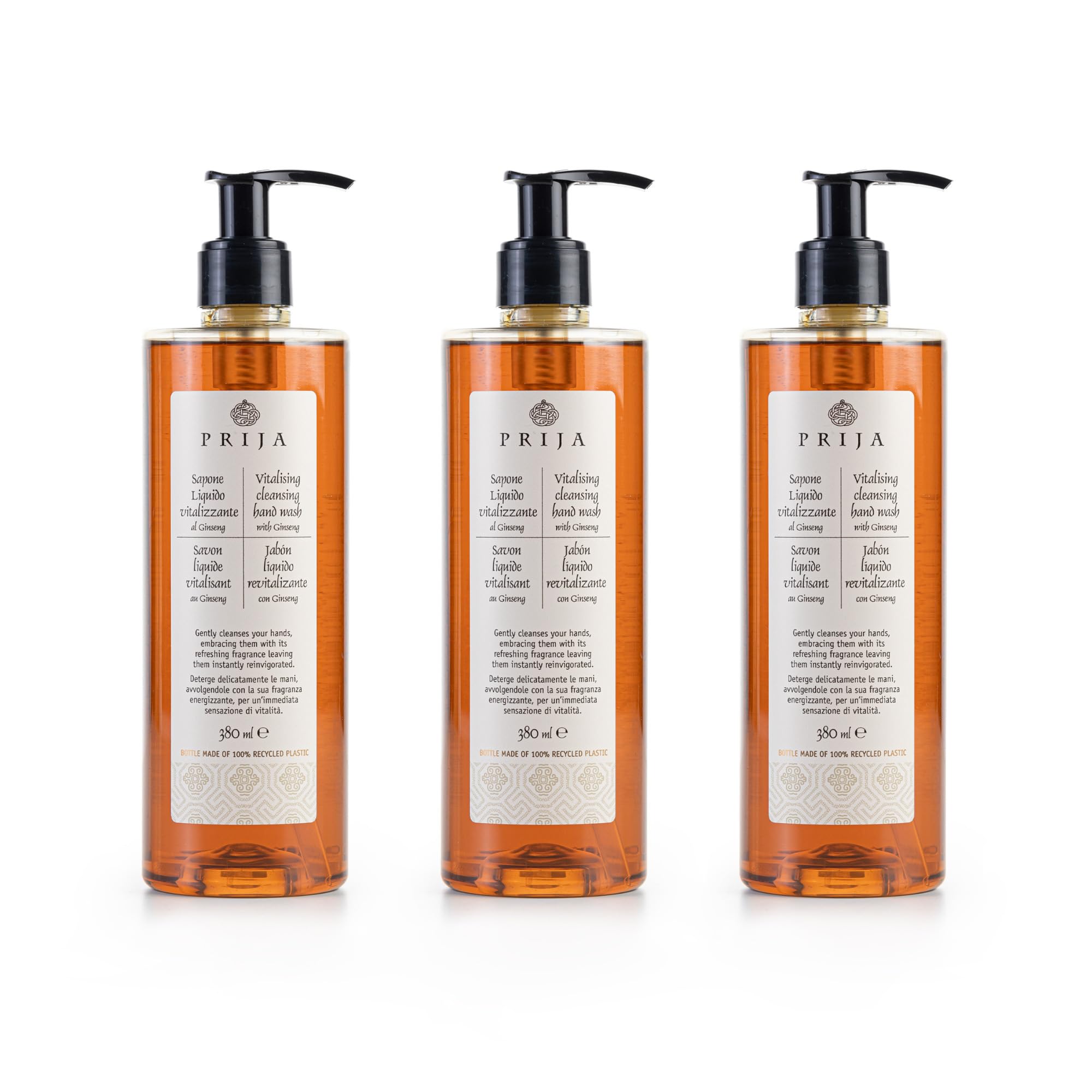 Prija Vitalising Hand Wash with Ginseng Extract Gently Cleanses Hands Moisturizing Liquid Hand Soap Vegan Friendly with Energizing Fragrance 3 x 12.85 Fl. Oz