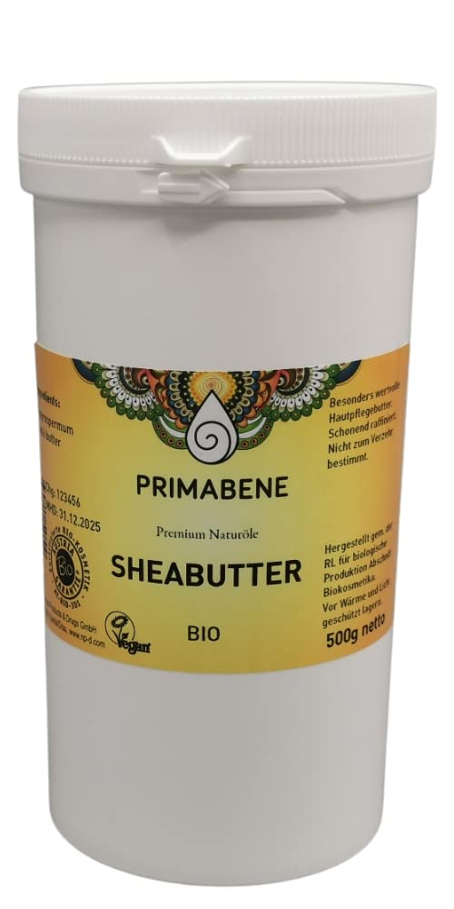 Main plant: Vitellaria Paradoxa Gärtn.F butyrospermum Parkii Sapotaceae (sapoten family) Inci: Butyrospermum Parkii Butter Origin: Shea butter, also called Karitettett, comes from the West African countries and is obtained from the fruit kernels of the Karite tree. Properties and ingredients: The shea butter KBA is mostly desodorated and is characterized by a weak-yellowish appearance, a ""butter-like consistency"" and only a weak smell of fat. Shea butter contains a relatively high percentage of unequaled components (6 - 8 ) and a natural sun protection factor (approx. SPSF 3) and is characterized by the natural content of allantoin, vitamin A and E.The shea butter is mainly incorporated into cosmetic products as a nourishing consistency. Application: The unauthorized ingredients are granted great cosmetological importance due to the skin -friendly, nourishing and protective properties.This applies in particular to the use of dry, fat and water-poor, often heavily scaly skin, such as.B. is known of work -damaged skin or old -age skin. Numerous external and inner influences on the skin z.B. sun rays, require care with selected natural substances such as shea butter. Shea butter is a high-quality, excellent tolerable, versatile raw material, which is characterized by good re-greg, good water binding capacity and a skin smoothing effect. Not for consumption! Warnings Not accurateparticularly rich in fatty acids and natural vitamins.Suitable for all skin types.Gives moisture and maintains.Organic.Stammpflanze: Vitellaria paradoxa Gärtn. f Butyrospermum parkii Sapotaceae (Sapotengewächse) INCI: Butyrospermum parkii butter Herkunft: Shea Butter, auch Karitefett genannt, kommt aus den westafrikanischen Ländern und wird aus den Fruchtkernen des Karitebaumes gewonnen. Eigenschaften und Inhaltsstoffe: Die Shea-Butter kbA ist meistens desodoriert und zeichnet sich durch ein schwach-gelbliches Aussehen, eine ""butterartige Konsistenz"" und einen nur schwachen Fettgeruch aus. Shea-Butter enthält einen relativ hohen Prozentsatz an unverseifbaren Bestandteilen (6 - 8 ) sowie einen natürlichen Lichtschutzfaktor (ca. LSF 3) und ist durch den natürlichen Gehalt an Allantoin, Vitamin A und E gekennzeichnet. Die Shea-Butter wird vor allem als pflegender Konsistenzgeber in Kosmetikprodukte eingearbeitet. Anwendung: Den unverseifbaren Inhaltsstoffen misst man durch die hautfreundlichen, pflegenden und schützenden Eigenschaften eine große kosmetologische Bedeutung zu. Dies gilt insbesondere für die Anwendung bei einer trockenen, fett- und wasserarmen, häufig stark schuppenden Haut, wie sie z. B. von berufsgeschädigter Haut oder Altershaut bekannt ist. Zahlreiche äußere und innere Einflüsse auf die Haut z. B. Sonnenstrahlen, fordern die Pflege mit ausgewählten natürlichen Substanzen wie Shea-Butter. Shea-Butter ist ein hochwertiger, ausgezeichnet verträglicher, vielseitig einsetzbarer Rohstoff, der sich durch eine gute Rückfettung, ein gutes Wasserbindungsvermögen und ein hautglättender Effekt auszeichnet. Nicht zum Verzehr bestimmt! WARNHINWEISE Nicht zutreffendBesonders reich an Fettsäuren und natürlichen Vitaminen. Geeignet für alle Hauttypen. Spendet Feuchtigkeit und pflegt. Bio.Primabene, Shea Butter Bio, naturrein, (1 x 500 g) 500 g (1er Pack)