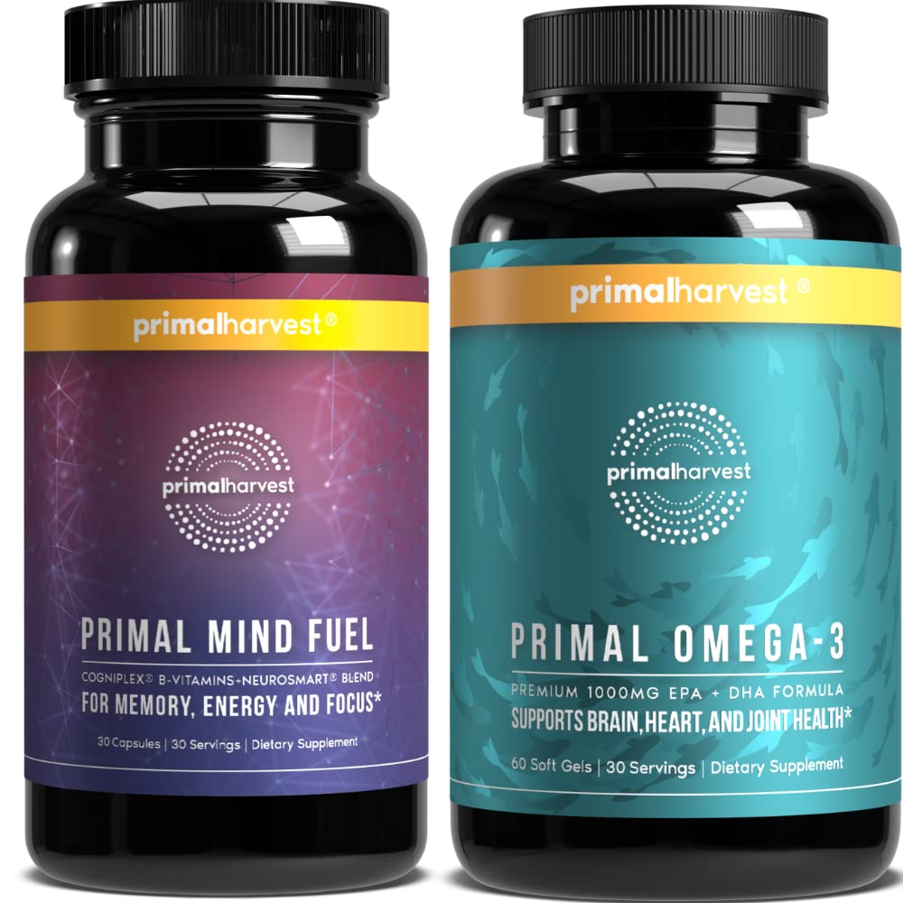 Primal Harvest Mind Fuel & Omega 3 Supplements for Women and Men Fish Oil Capsules and Mind Fuel Brain Booster Pills Bundle