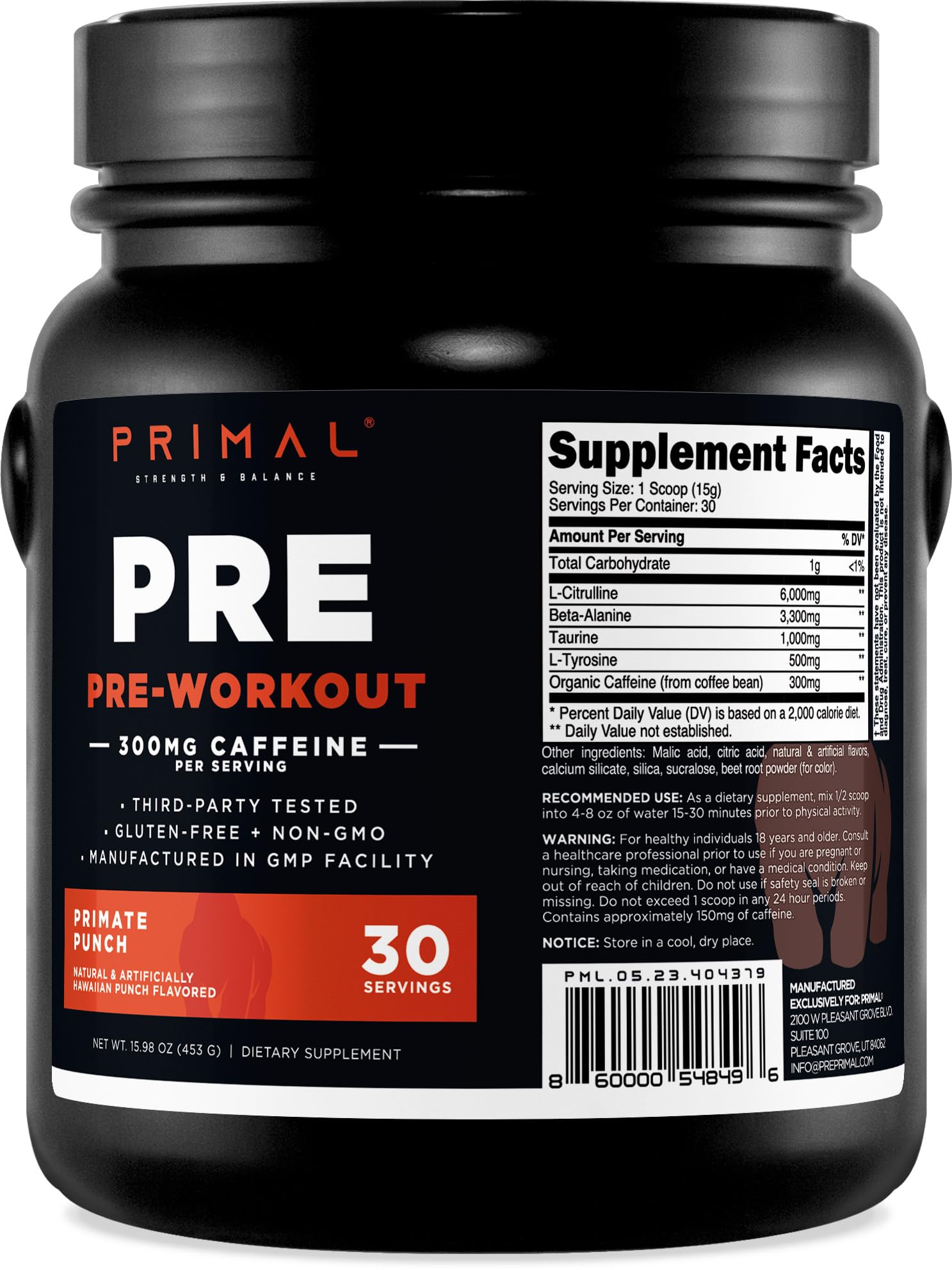 Primal Pre-Workout Primate Punch (30 Servings) (Tropical Flavored) - Gluten Free & Non-GMO