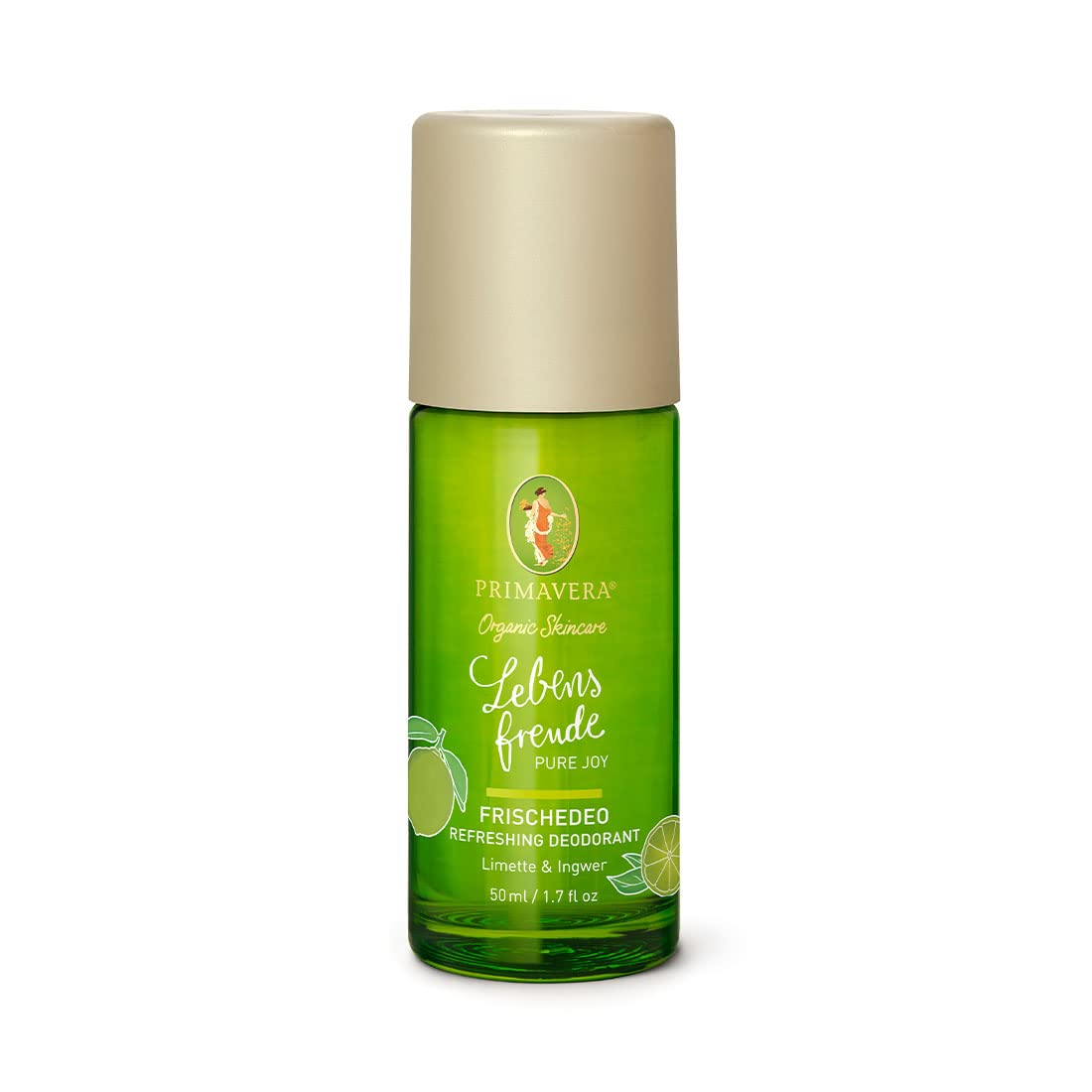 Primavera PRIMAVERA Lebensfreude Freshness 50ml - Roll-On Deodorant Natural Cosmetics - Lime Ginger Scent - 24 Hour Protection No Aluminium Salts - Vegan