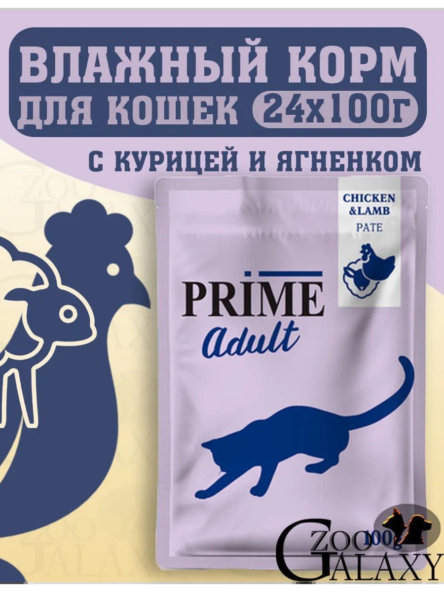 Корм для кошек ADULT паштет из курицы и ягненка 24х100г