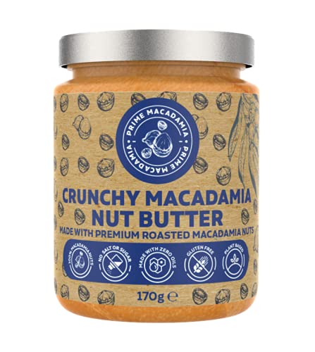 Intrigued by the sound of Crunchy Macadamia nut butter, then look no further than our 170g jar of Crunchy Macadamia nut butter, it may well be the most crunchiest and delectable you've ever tried. Our Crunchy Macadamia nut butter is made with 100 premium quality roasted Macadamia nuts. The ultra-thin texture is similar in consistency to single cream due to its healthy hi-oleic oil content and complimented by a lightly roasted flavour and crunchy bite-sized pieces of Macadamia nuts make for the perfect combination. Made with zero oil, salt or sugar. Free-from all additives and preservatives. Each tub of Macadamia butter goes through a traditional milling process to ensure its silky smooth. Packed full of natural nutrients like Vitamin B6, Copper, Iron, Magnesium Zinc. Perfectly suited for a plant-based diet in addition to being Keto, Paleo Coeliac friendly. We source our Macadamia nuts from the Limpopo province in South Africa where the Macadamia's are cultivated naturally by the perfect climate and fertile soil. We produce our hand-made Macadamia nut butters in London, UK in a 5-star hygiene rated production facility. Made in an environment that also handles peanuts. Our Crunchy Macadamia nut butter has a thin texture making it perfect for drizzling on porridge, yogurt and adding to protein shakes, smoothies or simply enjoy by the spoonful. For those that are more experimental in the kitchen you can use Macadamia butter as fillings for pastries, macaroons, biscuits, cakes and tarts. Here are more reasons to love our Crunchy Macadamia nut butter: ✓ Lovingly made in the UK in small batches ✓ Packed full of natural nutrients ✓ Perfectly suited for plant-based, Keto, Paleo Coeliac diets ✓ Made with 100 roasted Macadamia nuts and free-from oil, salt or sugar Satisfy your cravings without restrictions. Add our 170g jar of Crunchy Macadamia Nut Butter to your basket TODAY! INGREDIENTS 100 Roasted Macadamia Nuts DIRECTIONS Eat by the spoonful or simply drizzle on porridge, yogurt, granola, pancakes etc See moreRich Oleic oil content known for reducing cholesterol and inflammation. A thin runny consistency perfectly suited for drizzling on porridge, yogurt, granola etc. Natural source of fibre and plant based proteins. Perfect for a low carb lifestyle. Coeliac, Keto, Paleo Vegan diet friendly. Expiry Date: December 2024. Good source of Vitamin B6, Copper, Iron, Magnesium Zinc. Contains bite-size pieces of crunchy Macadamia nuts. Made with 100 roasted Macadamia nuts.