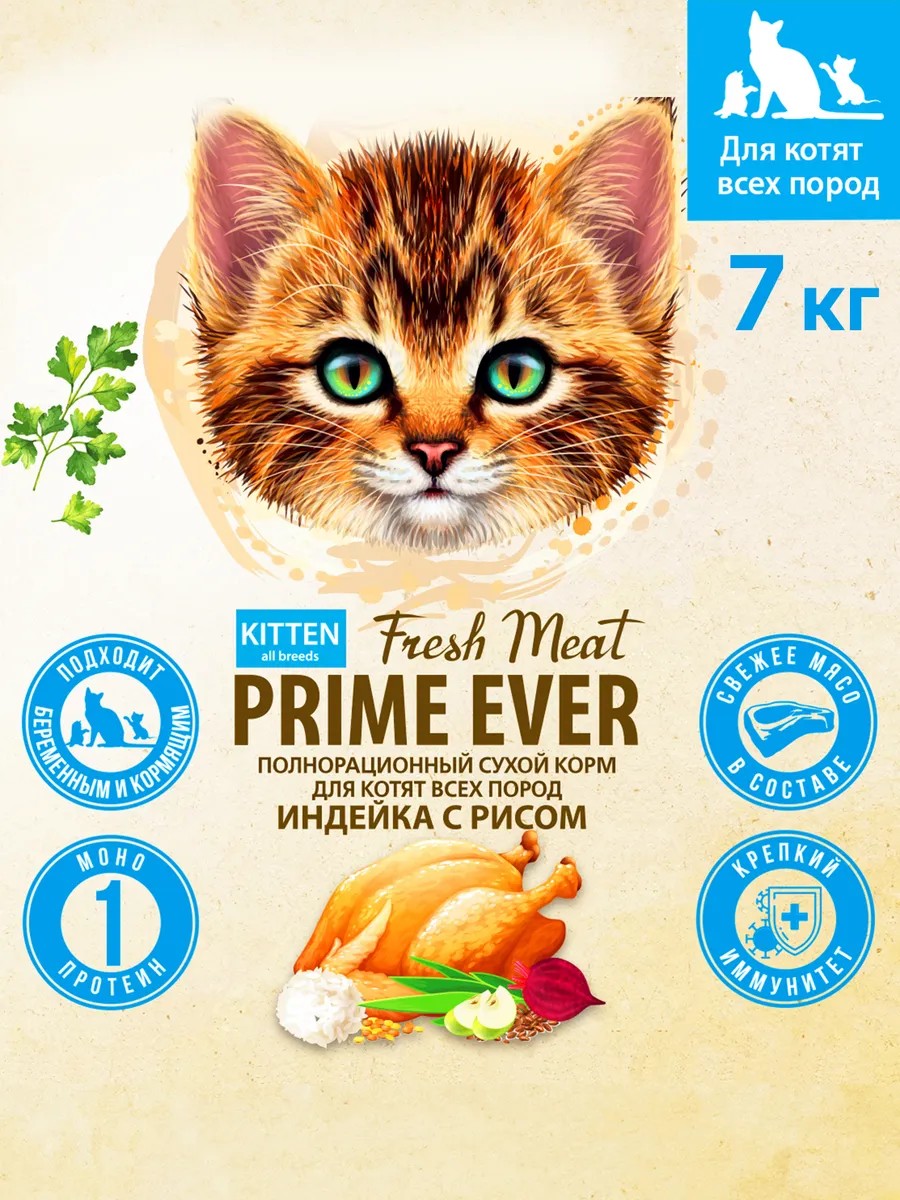 Prime Ever Fresh Meat dry kitten food with turkey and rice is an excellent choice for kittens, providing them with complete nutrition.