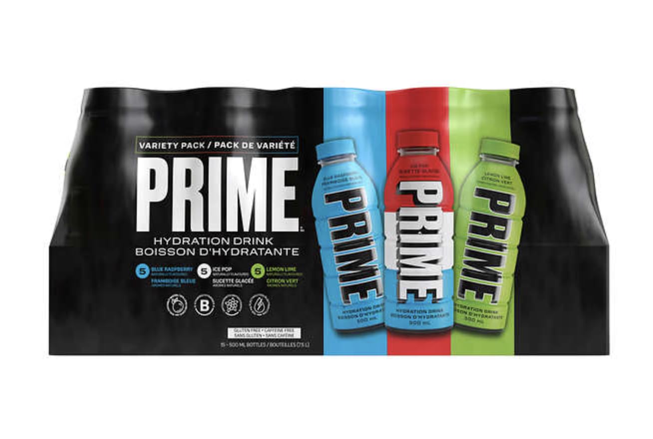 Prime Hydration Variety Pack Ice Pop, Blue Raspberry, Lemon Lime (15 Bottles - 3 Flavours - 16.9 Fl Oz Each) Prime Hydration is a better hydration option where function and flavour come first. Each bottle contains 10 coconut water, zero sugar, BCAA's, antioxidants, electrolytes, and zinc for immunity. Prime combines the ingredients you want with the flavours you love to hydrate you with every sip. Prime Hydration has 10 Coconut Water is Naturally Flavored and has No Artificial Colors Potassium packed Electrolytes, Zinc for Immunity, Antioxidants and BCAA's Every bottle contains 25 or more recycled plastic Prime Hydration is brought to you by Logan Paul, and KSI. A better hydration option with zero sugar and 10 coconut water for hydration in every sip.Prime is perfect for athletes and everyone of all ages! We're confident you'll love it as much as we do. Humbly, The Prime Team. Prime combines the ingredients you want with the flavors you love to hydrate you with every sip. Prime was developed to fill the void where great taste meets function. With bold, thirst-quenching flavors to help you refresh, replenish, and refuel, Prime is the perfect boost for every endeavor. Naturally flavored, no artificial colors, gluten free!. 10 coconut water, zero added sugar, 250mg BCAAs, B Vitamins, Antioxidants, 834mg Electrolytes and only 20-25 Calories per bottle. Caffeine FREE!. Canadian Prime Hydration Variety Pack Ice Pop, Blue Raspberry, Lemon Lime (15 Bottles - 3 Flavours - 16.9 Fl Oz Each).
